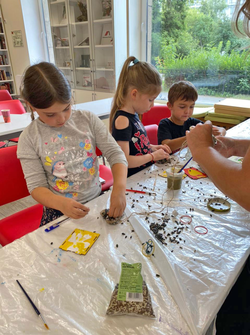 12 августа в Библиотеке Ленина (ул.Воскова, д.2) было шумно: детские голоса звучали вперемешку с птичьим щебетом. Что это было? А просто юные читатели и их родители изучали птиц, размышляли, не заняться ли им бёрдвотчингом и готовили угощение для зимующих пернатых.