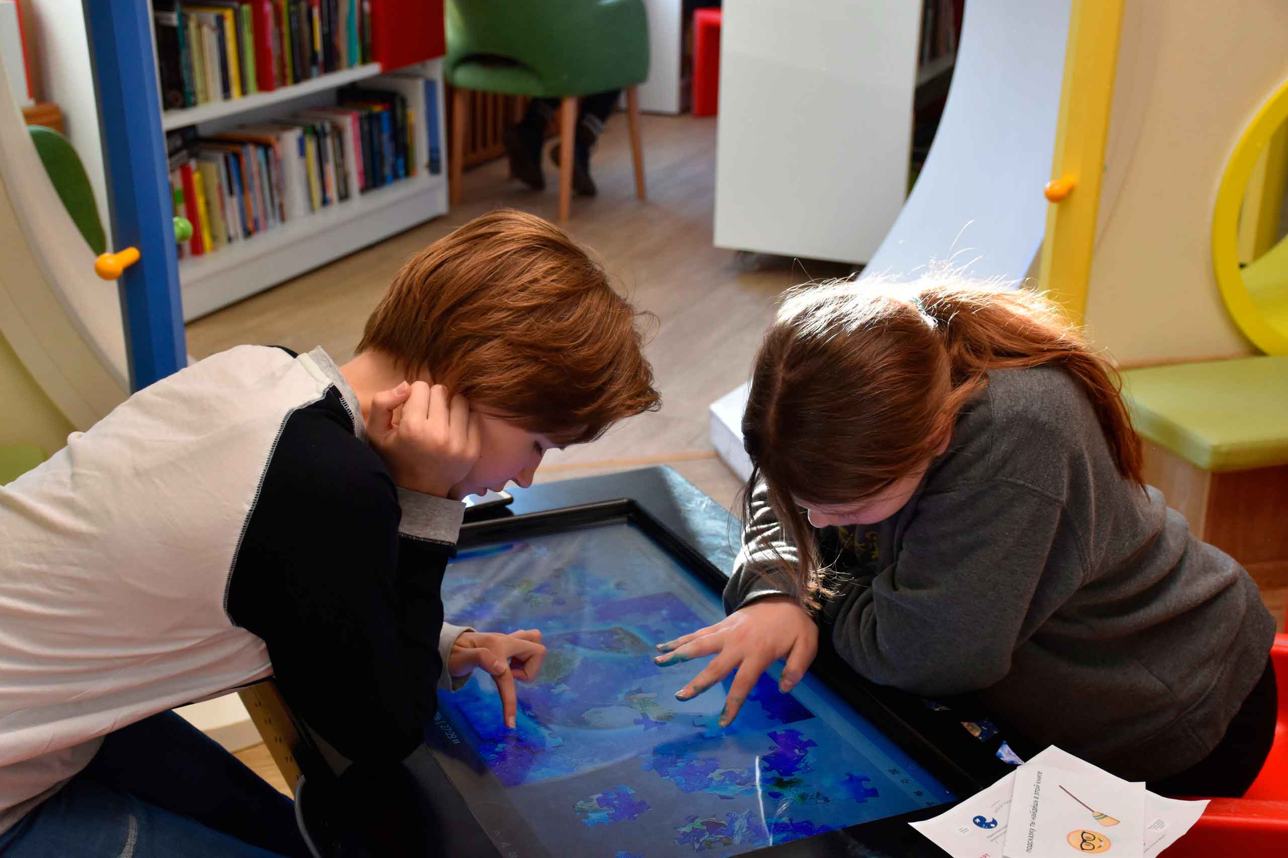 Самые младшие читатели совершили путешествие на Луну вместе с героями книги Гуниллы Ингвес «Мишка Бруно летит на Луну». Малыши и их родители услышали звучание планет солнечной системы, полюбовались лунными камнями и, представив себя в невесомости, попробовали преодолеть земное притяжение.
