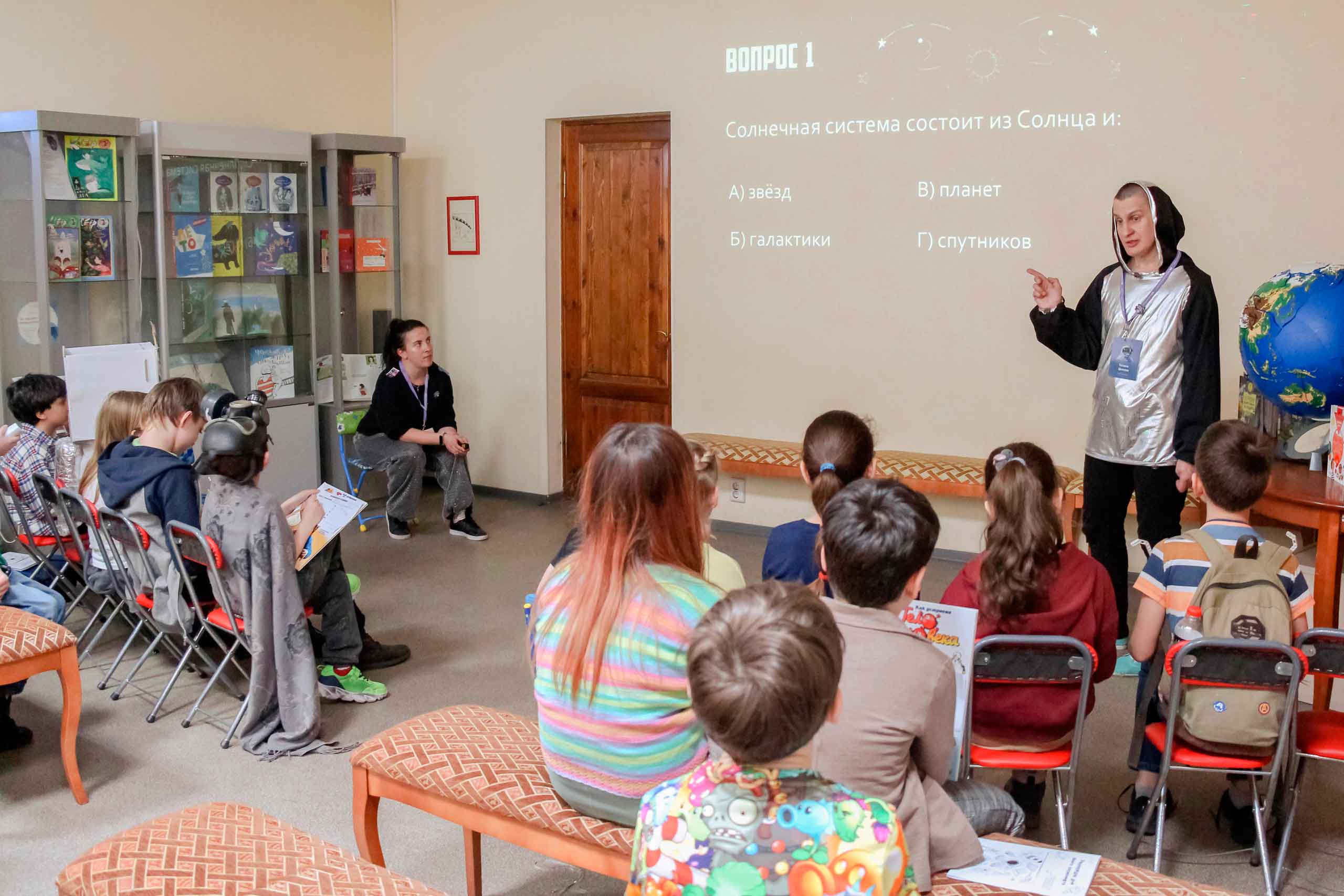 Читателей школьного возраста ждал квиз «Просто космос!», состоявший из разминки и двух туров. Ребята открыли для себя много интересных фактов, например, собор, построенный в XII веке в Испании, украшен фигурой космонавта, а Валентина Терешкова так любила молоко, что с ней хотели отправить в космос живую козу.