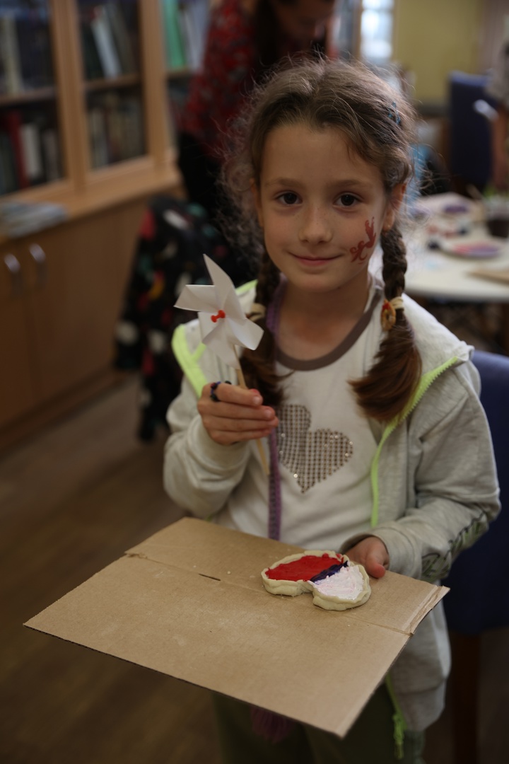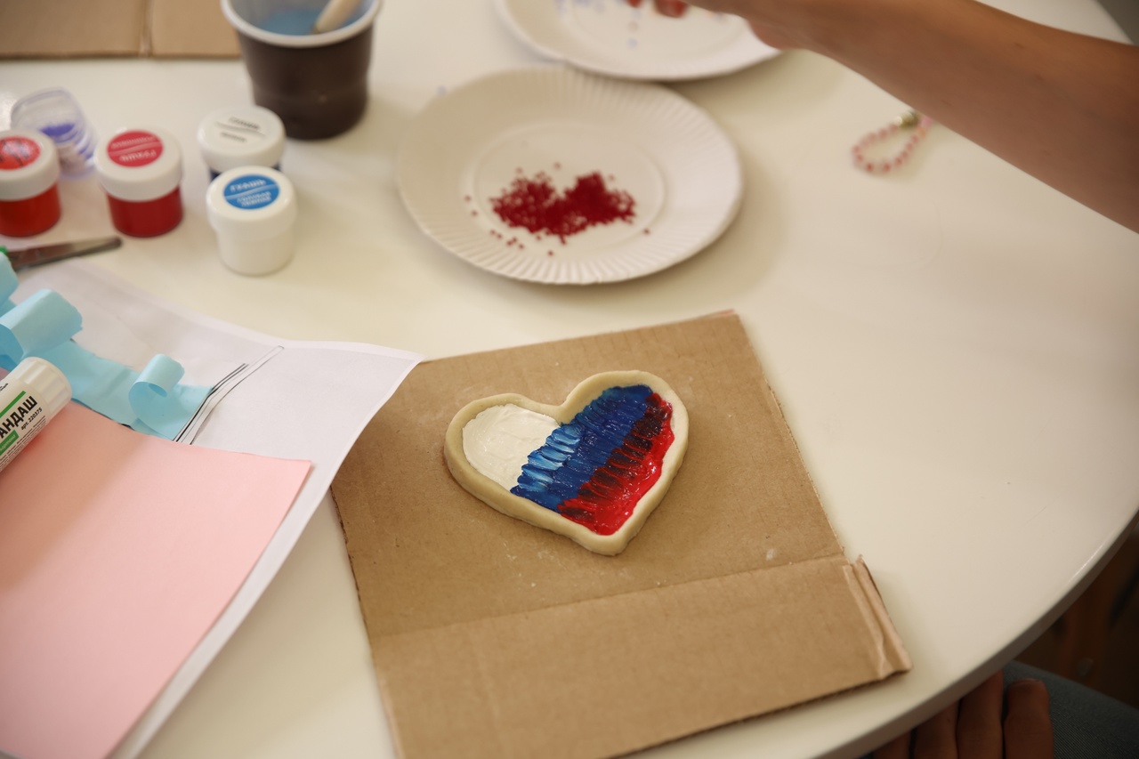 В день празднования Дня государственного флага Российской Федерации – 22 августа - в Центральной районной библиотеке имени А.С. Пушкина (Большой пр. П.С., д.73/36) прошла арт-мастерская «Триколор», посвященная этому празднику. Участники не только познакомились с историей праздника и узнали интересные факты про государственные символы, но и в творческой атмосфере создали несколько интересных поделок в цветах триколора. Флаг Российской Федерации — символ нашего национального единства и гордости. Он представляет нашу страну в мире, а его цвета символизируют многовековую историю России, ее культуру и традиции. А какой именно цвет флага что обозначает гости арт-мастерской узнали в самом начале мероприятия, чтобы вкладывать в свои произведения искусства еще и новые знания. Поэтому тарелочки из слоеного теста были окрашены в основном в синий цвет, который обозначает веру, верность и постоянство. Также участники сделали белые ромашки из бисера, цвет которых символизирует чистоту и совершенство. В конце вечера сделали поделку из оригами и поиграли в различные настольные игры от команды «Игротехники». Самым юным участникам также сделали аквагрим с триколором.