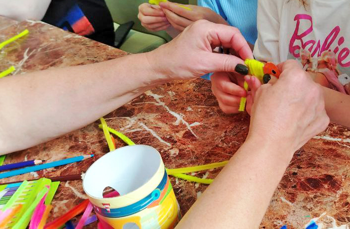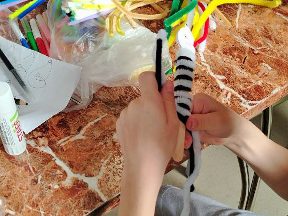 Не обошлось, конечно, без пушистого мастер-класса! Ребята смастерили из подручных материалов ярких и удивительных питомцев – разноцветных, в шляпках, с бантиками, в цветастых свитерах.