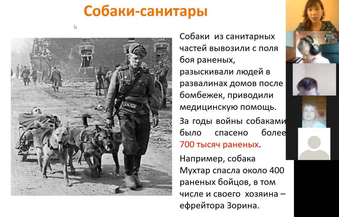 В честь 75-летия Победы в Великой Отечественной войне Центральная детская библиотека Петроградского района на базе платформы Zoom провела онлайн-занятие для детей, посвящённое животным, которые принимали участие в военных действиях.