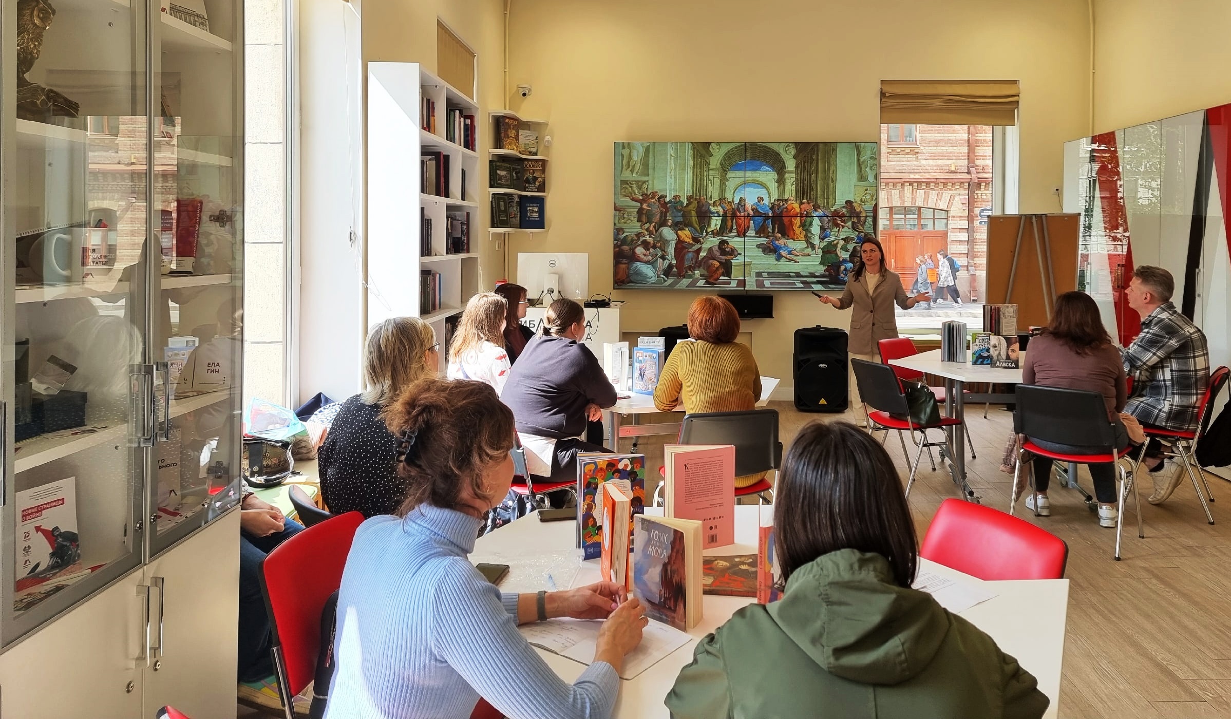 В рамках этих двух встреч участники познакомились с пространством библиотеки, обсуждали пути взаимодействия подростков, родителей, школы, педагогического сообщества и общедоступной библиотеки, опыт и перспективы сотрудничества, познакомились с современной русской и зарубежной литературой для подростков и молодежи, приняли участие в квизе «Битва умников».