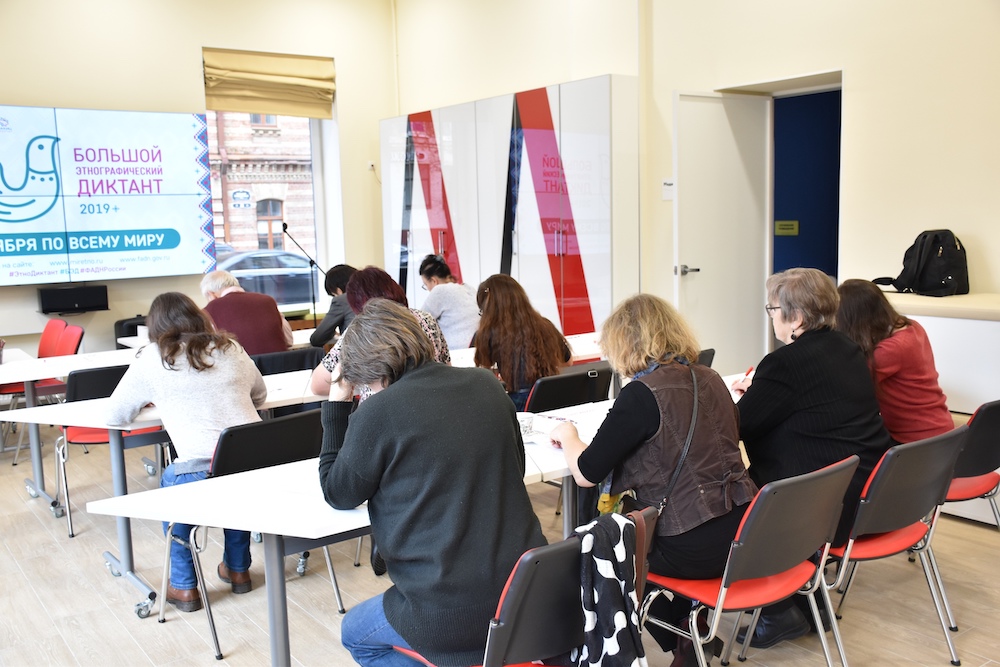 139 площадок были зарегистрированы в этом году в Санкт-Петербурге. Впервые участие в акции приняли библиотеки Петроградской стороны. Желающих проверить свои знания по этнографии встречали в Юношеской библиотеке им. А.П. Гайдара (Большой пр.ПС, д.18А) и в Библиотеке им.В.И. Ленина (ул. Воскова, д.2). Специально для этого события библиотечные специалисты подготовили список книг, с которыми подготовка к диктанту была интереснее и продуктивнее.