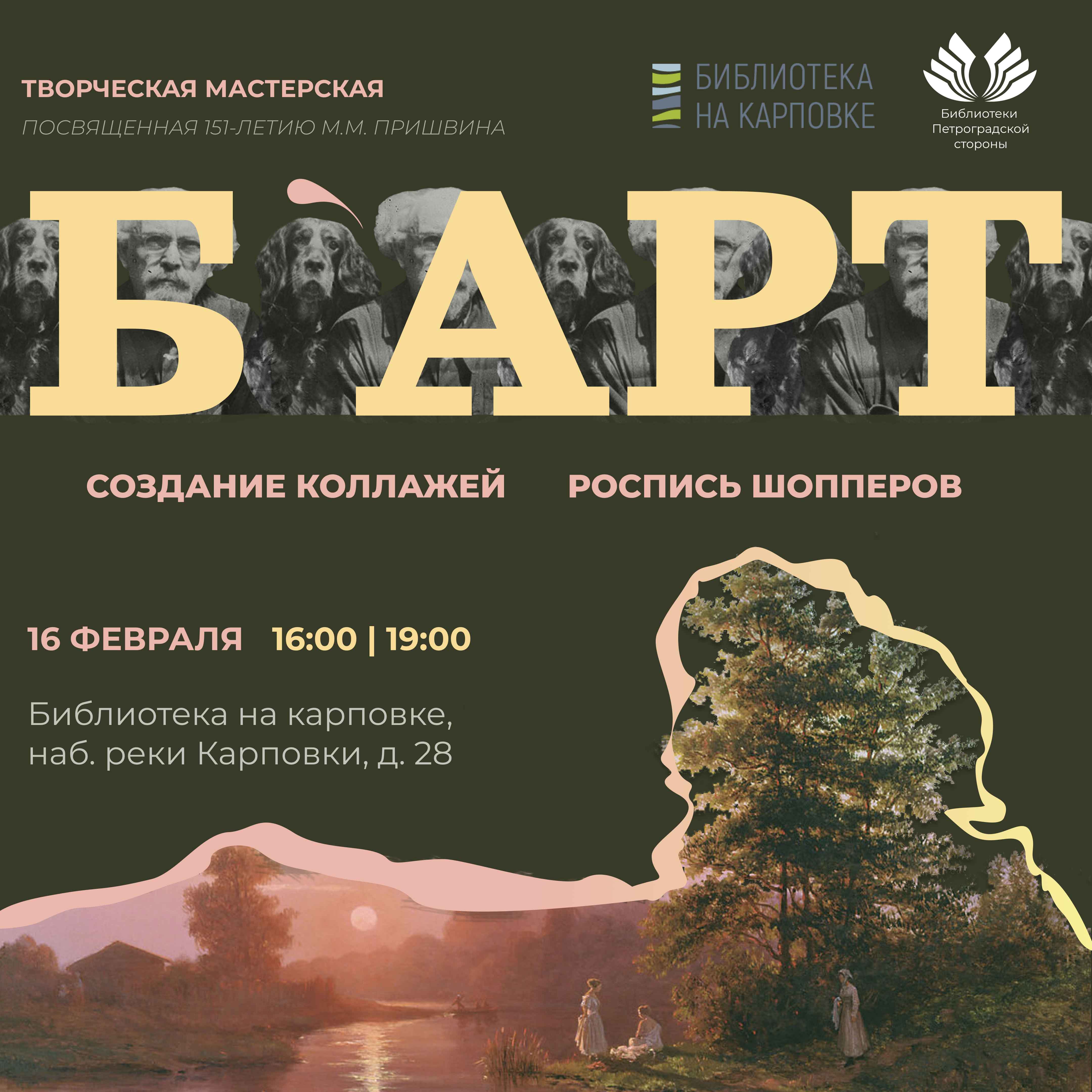 В этом году отмечается 151-летие со дня рождения Михаила Михайловича Пришвина (1873-1954 гг.). Не смотря на то, что юбилей Пришвина был в 2023 году, в начале 2024 года отмечается 70 лет со дня смерти писателя. Поэтому именно этому писателю в этом году посвящена творческая мастерская «Б`Арт».