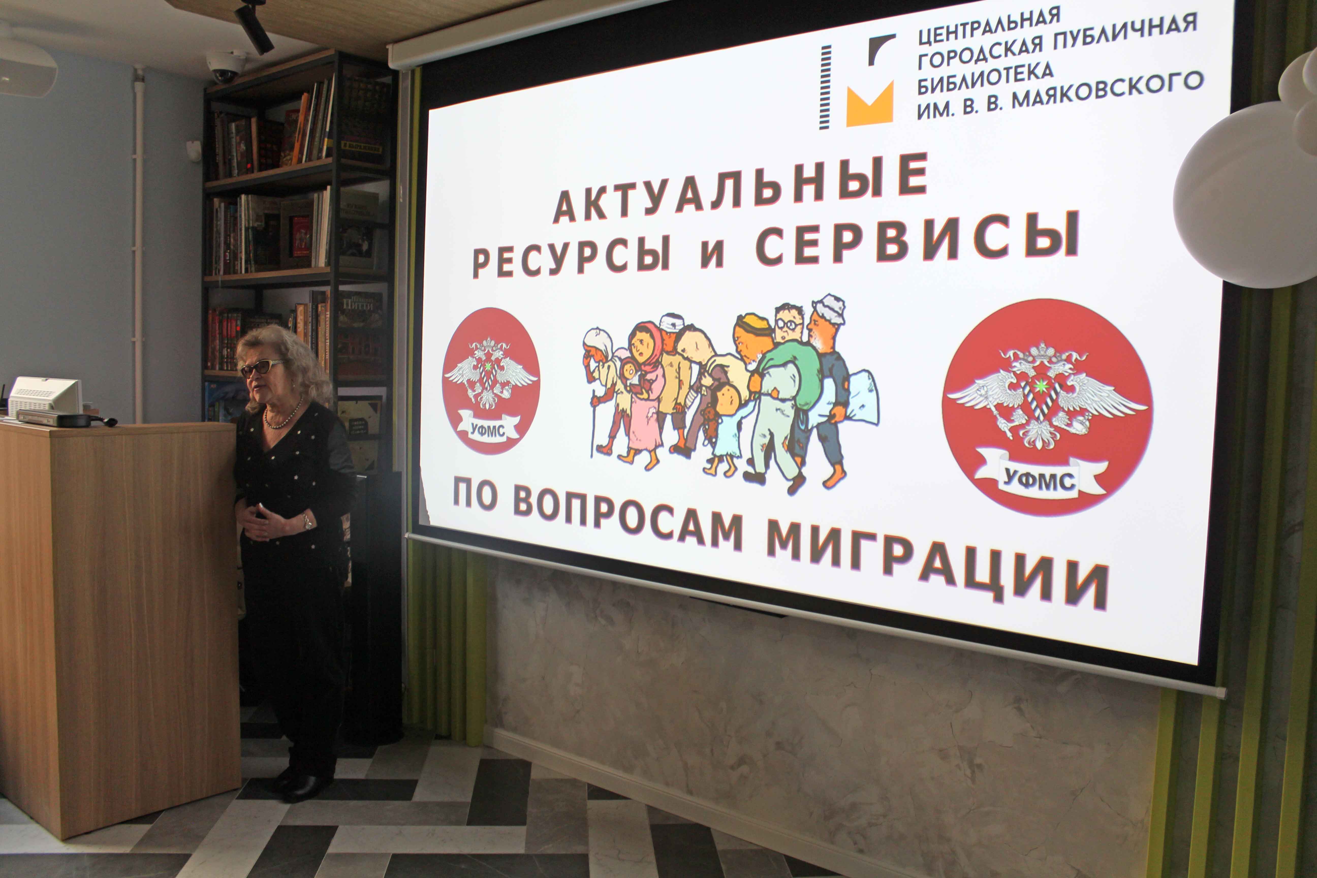 Актуальные ресурсы и сервисы по вопросам миграции представила Марина Викторовна Конюхова, зав. отделом Центр деловой и социально-правовой информации ЦГПБ им. В. Маяковского.
