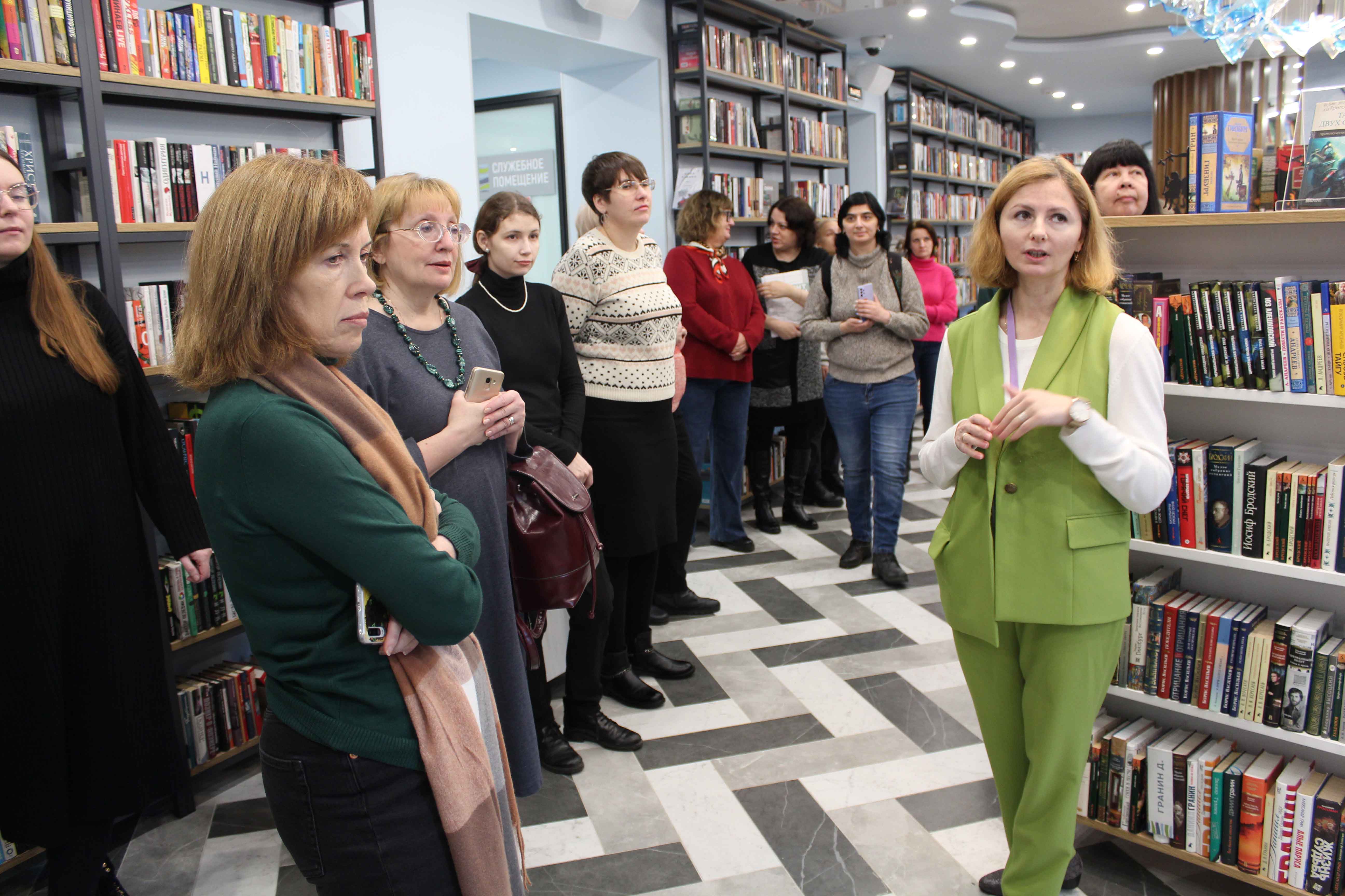 Экскурсию по обновленному пространству провела заведующая Библиотекой на Карповке Анна Сергеевна Горбачева.