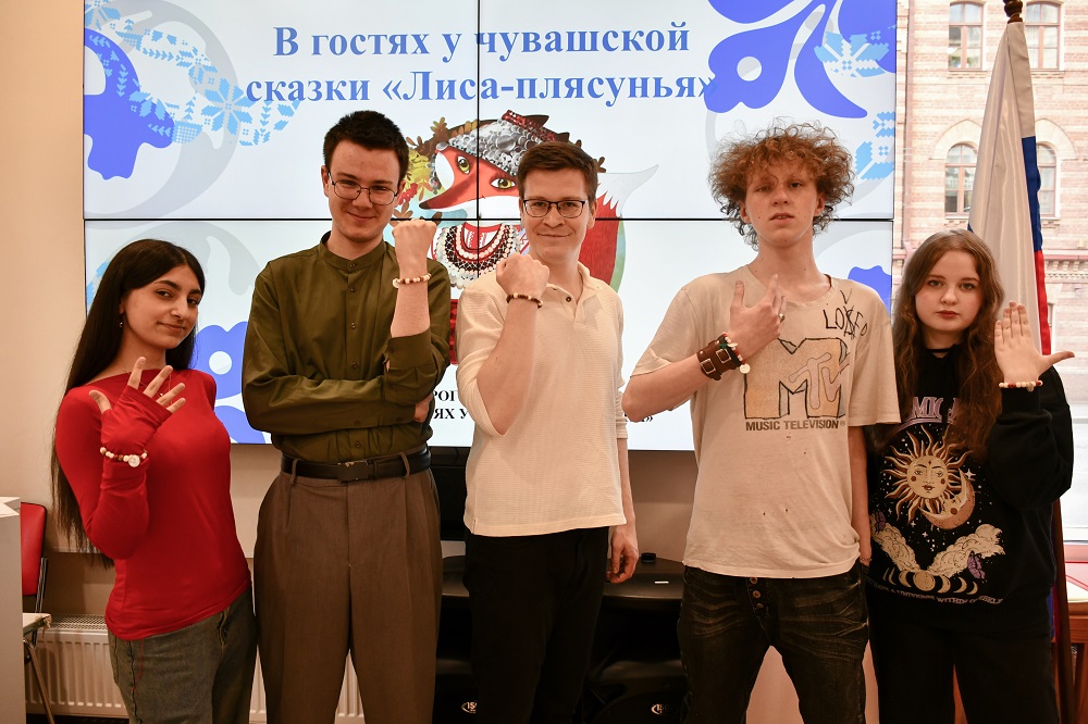 «Сказочная карта России: в гостях у чувашской сказки». Познакомились с чувашской народной сказкой «Лиса-плясунья», поговорили о национальном костюме, узнали особенности местной кухни и создали своими руками изделие, вдохновленное традиционным чувашским орнаментом.
