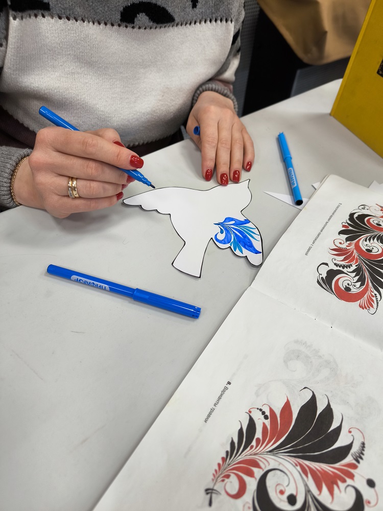 «Русская нарядная птичка». Создали декоративный элемент для дома - гирлянду из птиц, раскрашенных в стиле русской народной живописи.