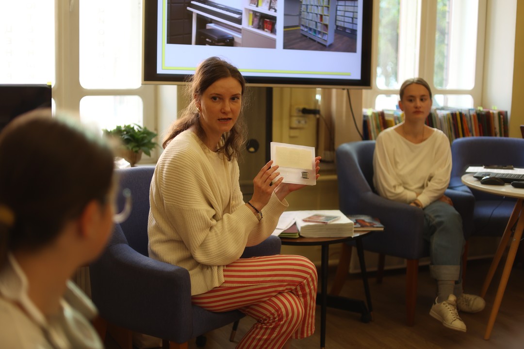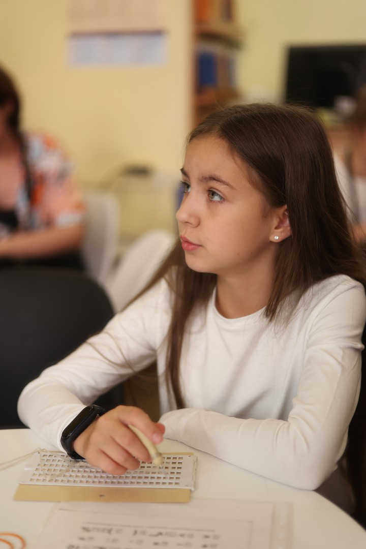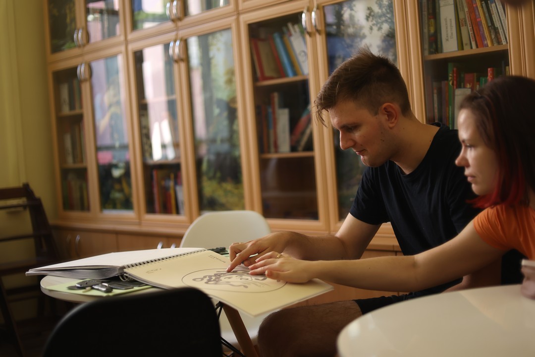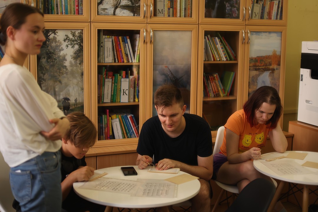 Участникам мероприятия продемонстрировали издания в специальных форматах из фонда библиотеки «Точки зрения», а также научили азам написания текста с использованием рельефно-точечного шрифта.