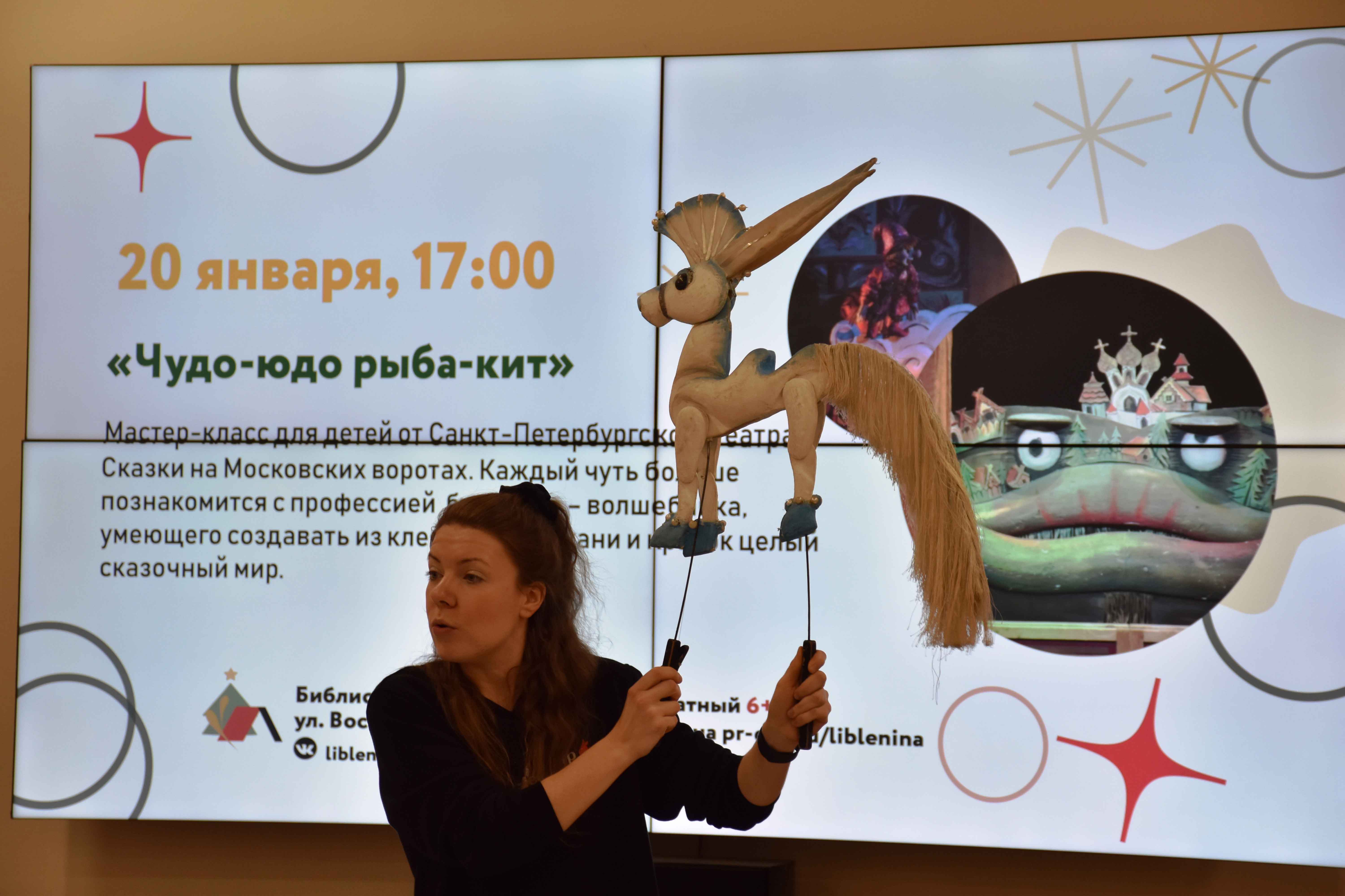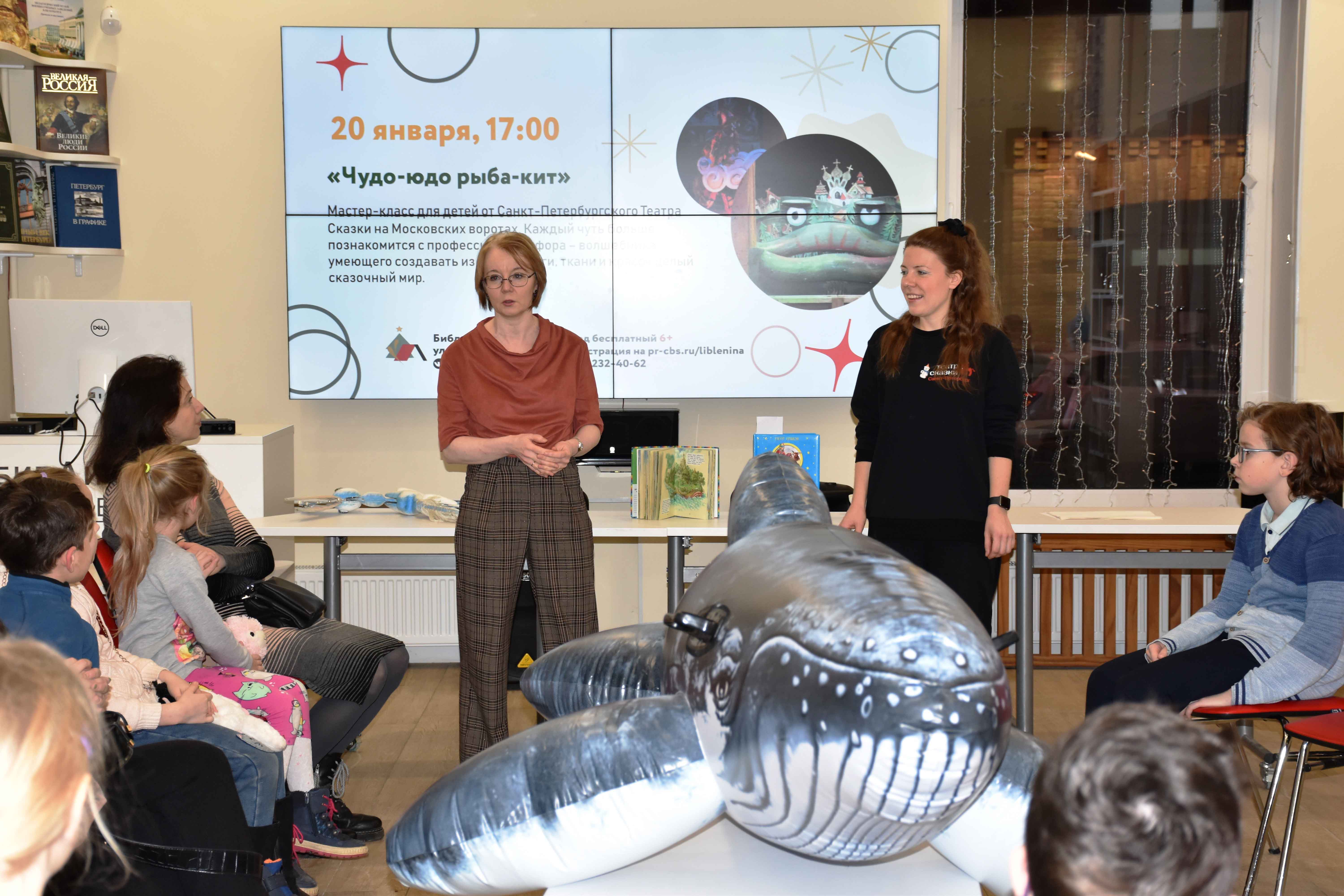 20 января в Библиотеке имени В.И. Ленина состоялось открытие нового сезона совместных встреч Библиотек Петроградского района и Кукольного театра сказки. В центре медиазала библиотеки расположился большой надувной кит – игрушка, помогающая маленьким пловцам во время летних морских приключений. «Зачем здесь кит для плавания?» – спрашивали дети. «Скоро он превратится в настоящего!» - обещали библиотекари, а дети недоверчиво улыбались. Но в этом и состоит чудо кукольного театра: даже зная, что перед ним игрушка, в какой-то момент зритель начинает верить в происходящее, и стол превращается в океан, а бумажный человечек – в настоящего героя.