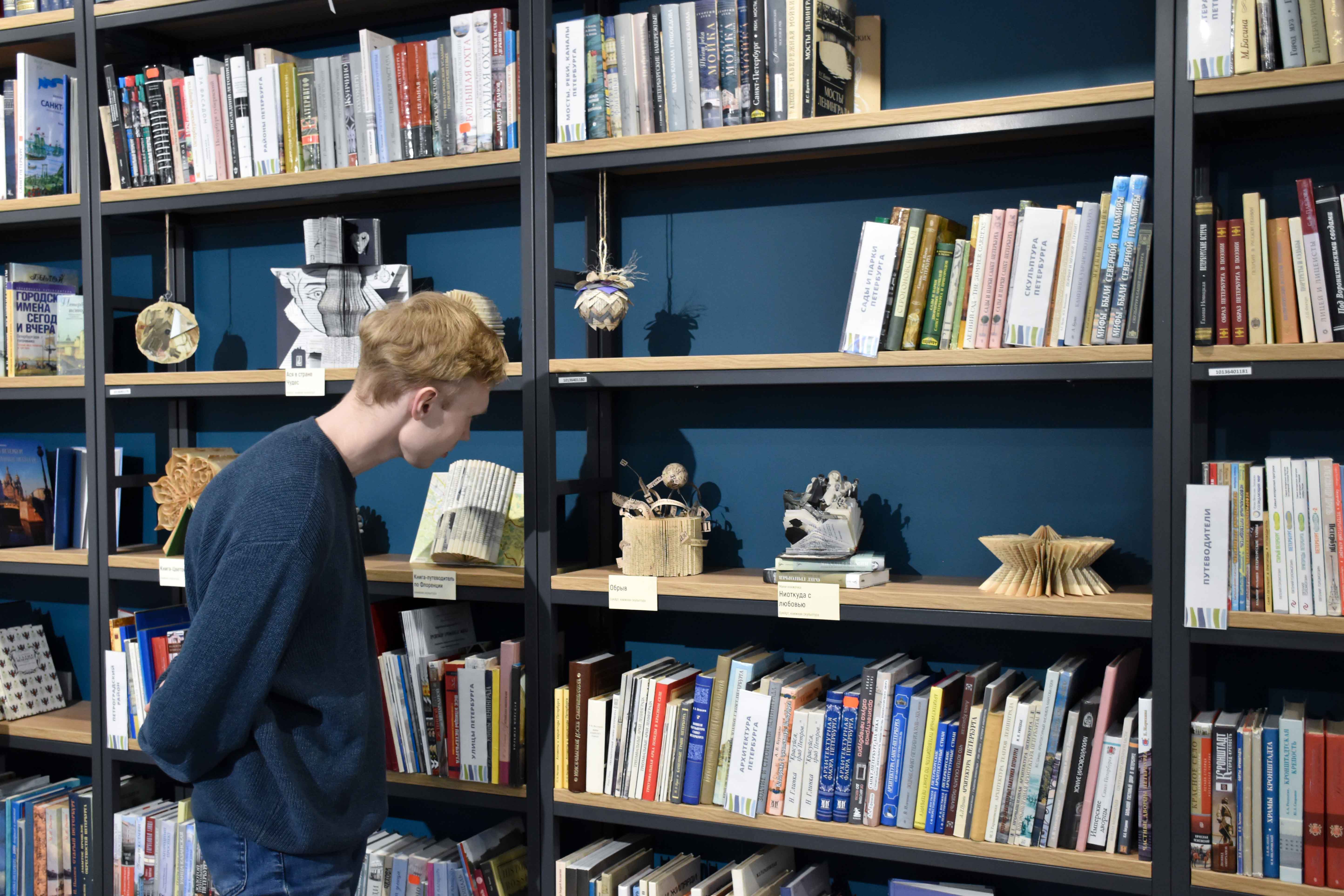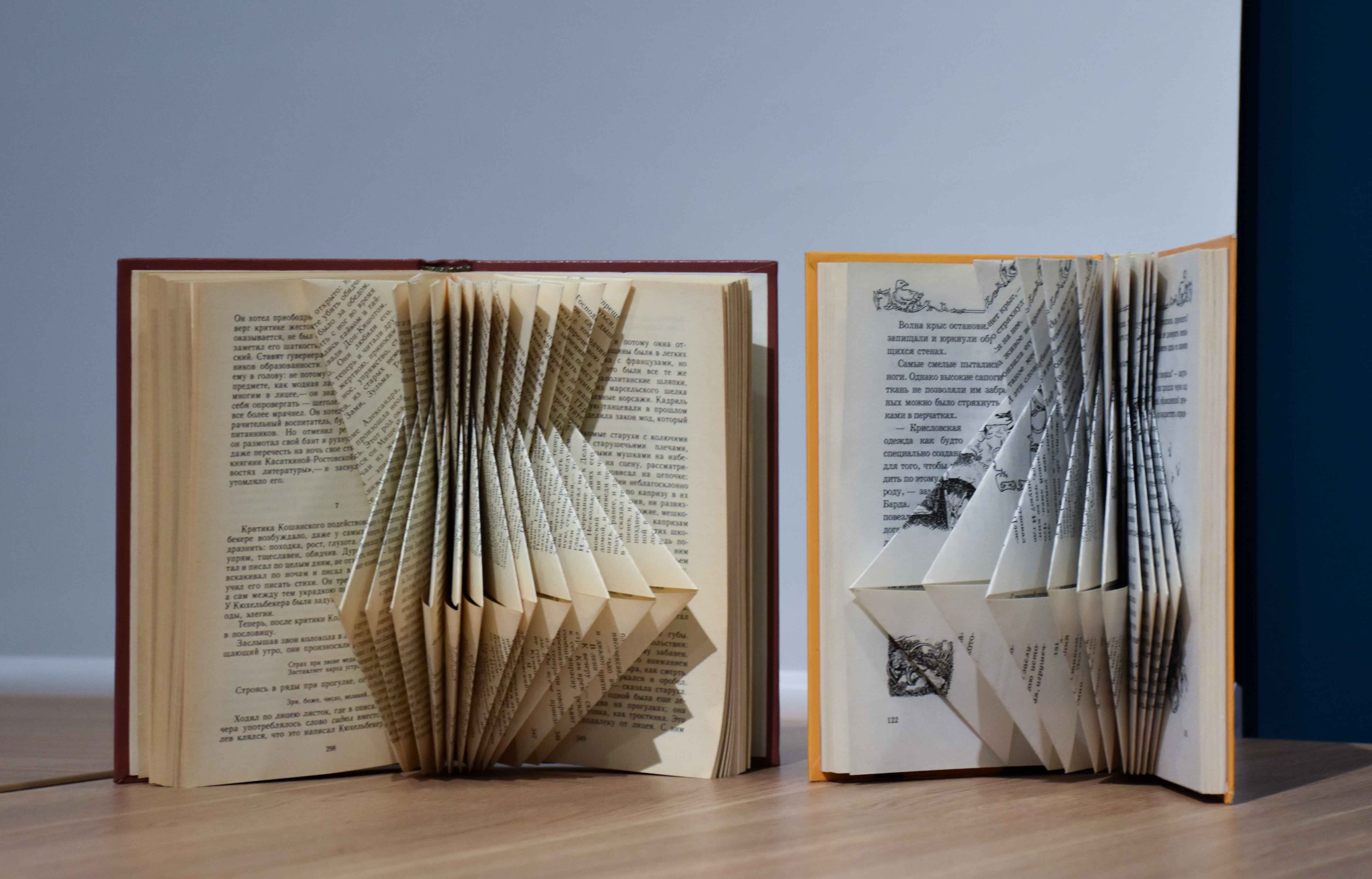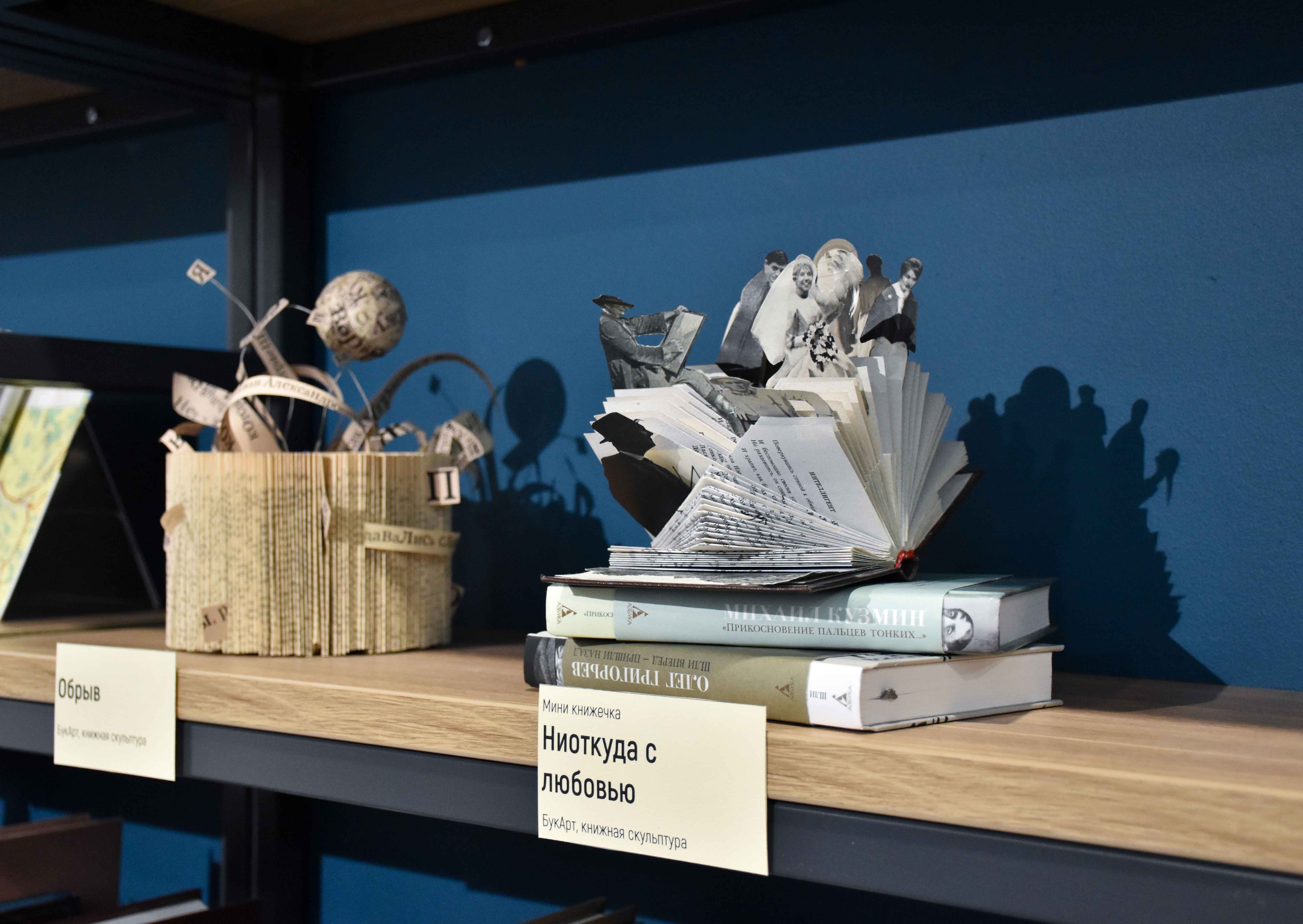 В Библиотеке на Карповке (наб. р. Карповки, д. 28) открылась выставка произведений петербургской художницы Аси Немчёнок «Вдохновение Букарта», посвященная искусству создания арт-объектов из книг.