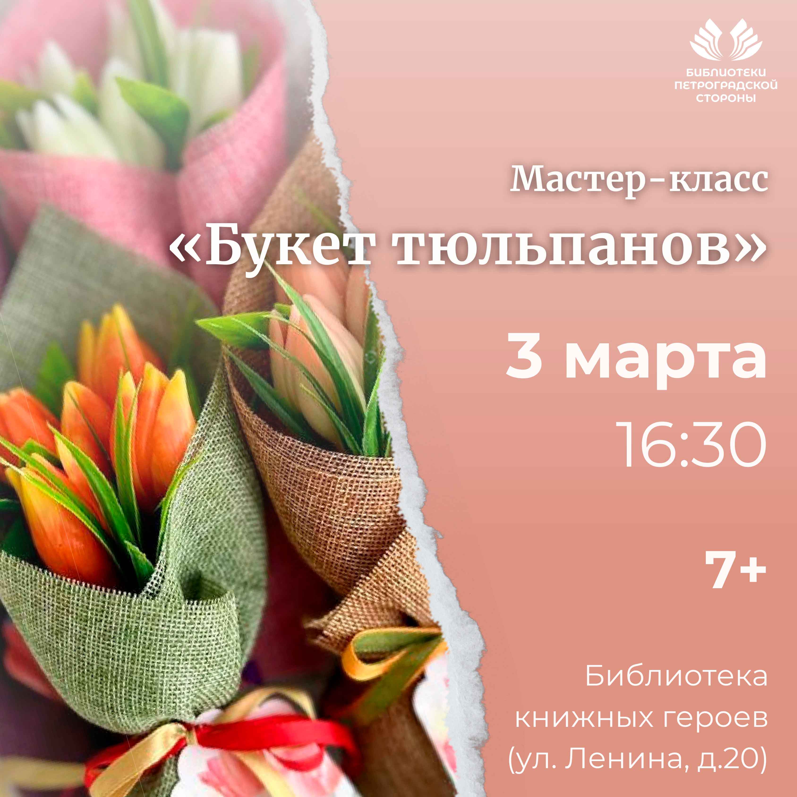 03 марта в 16.30 в Библиотеке книжных героев состоится детский мастер-класс «Букет тюльпанов».