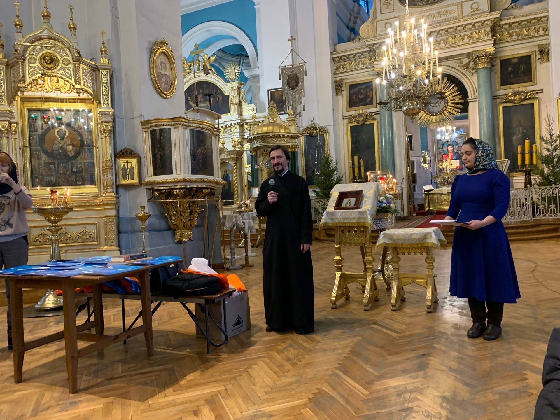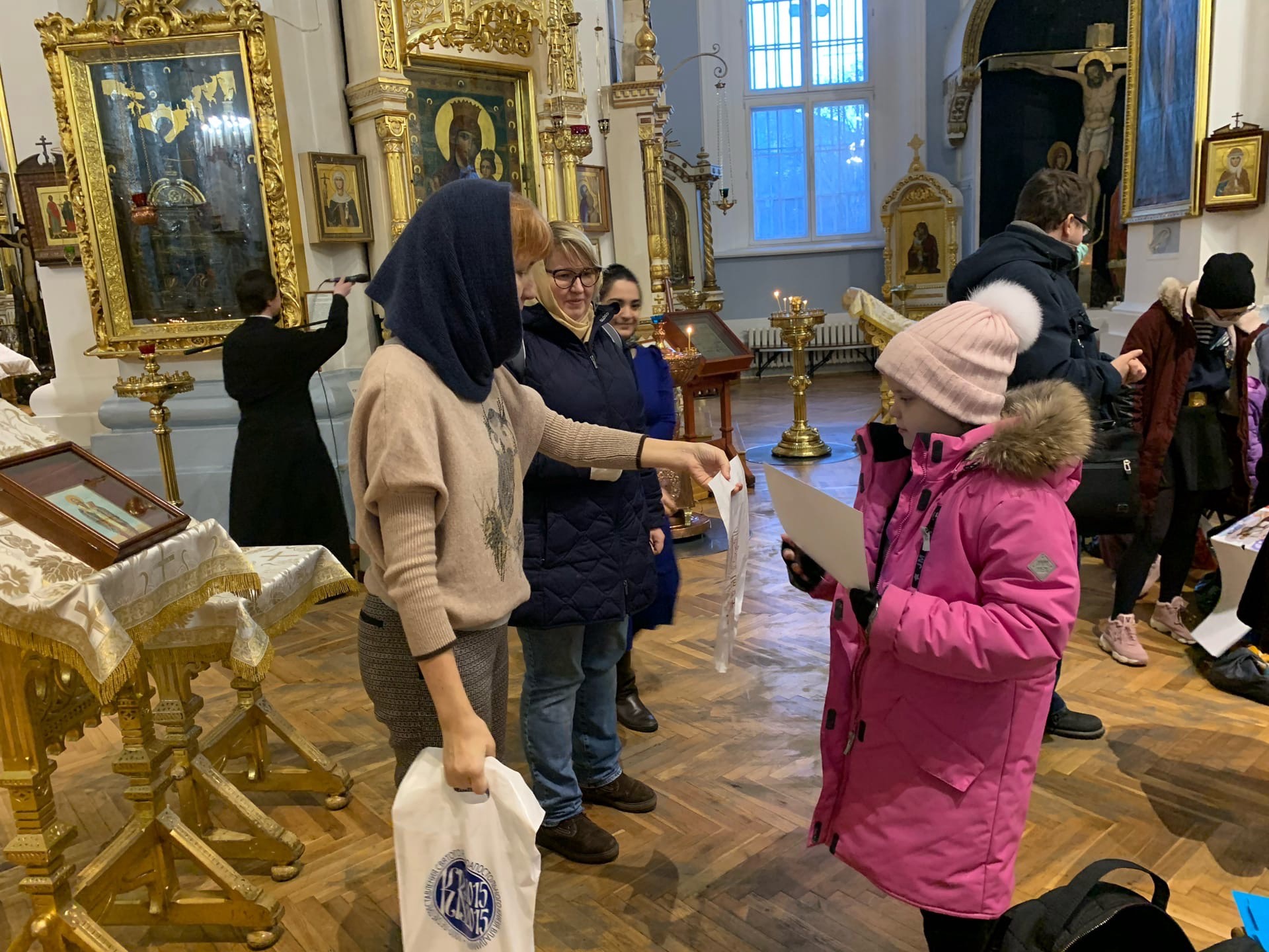 Дьякон Князь-Владимирского собора – отец Артемий, провел для всех желающих экскурсию по собору, рассказал об истории празднования Рождества, а также поделился своими впечатлениями о творчестве детей.