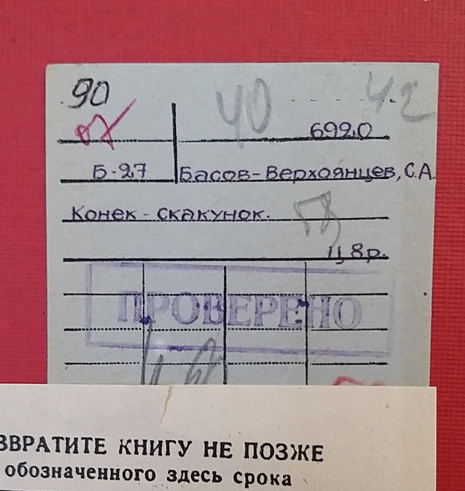 На выставке редких изданий в библиотеке представлена книга С. А. Басова-Верхоянцева, который позаимствовал классический сюжет «Конька-горбунка», пересказав его по-своему и дополнив новыми реалиями. Так в 1906 году появился «Конёк-скакунок», развеявший миф про «доброго царя и плохих бояр». Эта сказка-памфлет была повторно выпущена в 1935 году в издательстве «Советский писатель» с иллюстрациями Н. Зиновьева. У данного издания сохранился подлинный довоенный книжный формуляр за инвентарным номером 6920, с отметками карандашом 1940 и 1942 года. На экскурсиях и встречах в библиотеке сотрудники с удовольствием рассказывают о редких и современных изданиях из фондов Юношеской библиотеки имени А. П. Гайдара.