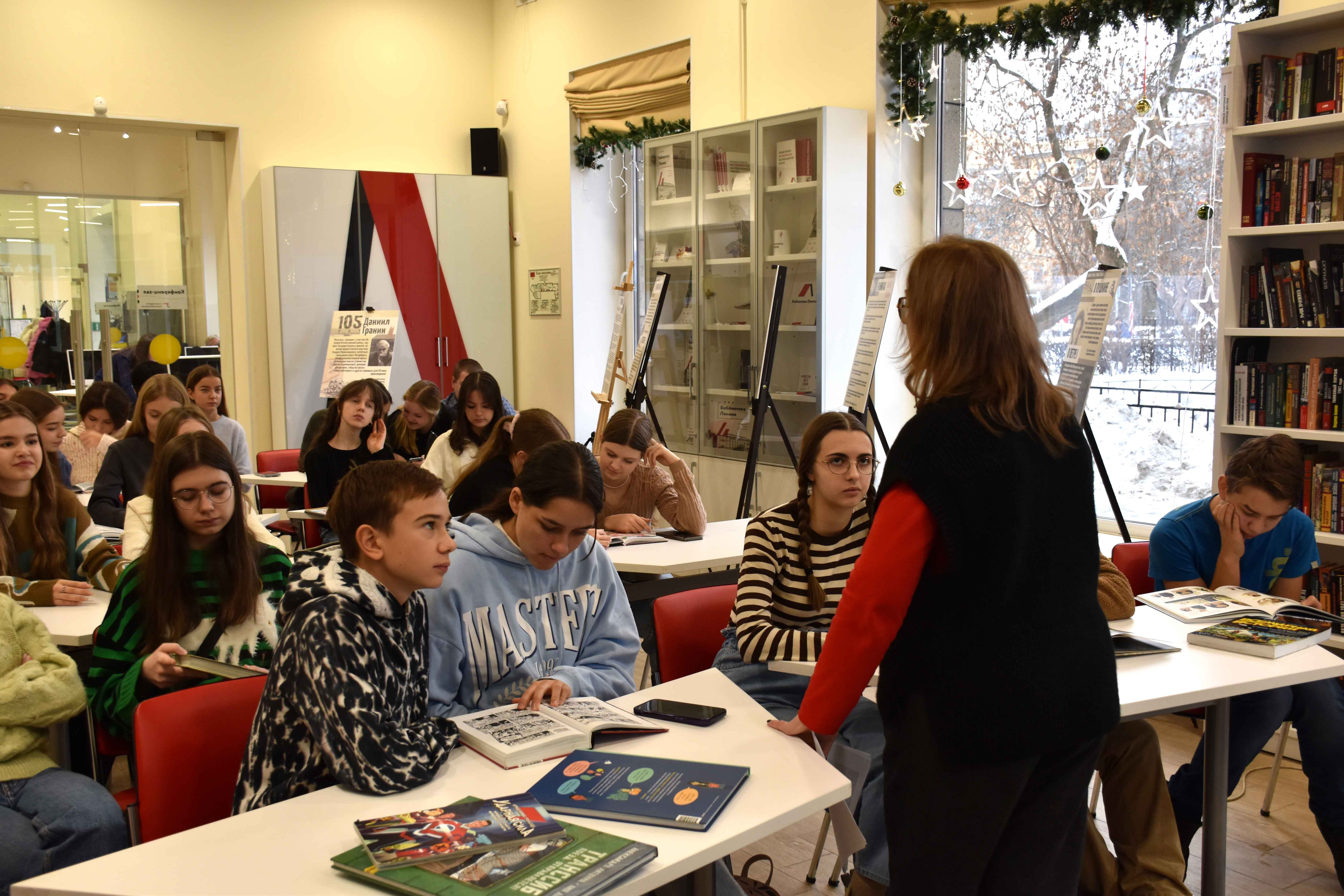6 декабря в библиотеке имени В.И. Ленина (ул. Воскова, д. 2) побывали учащиеся 8 "Д" класса Академической гимназии № 56 имени М.Б. Пильдес.