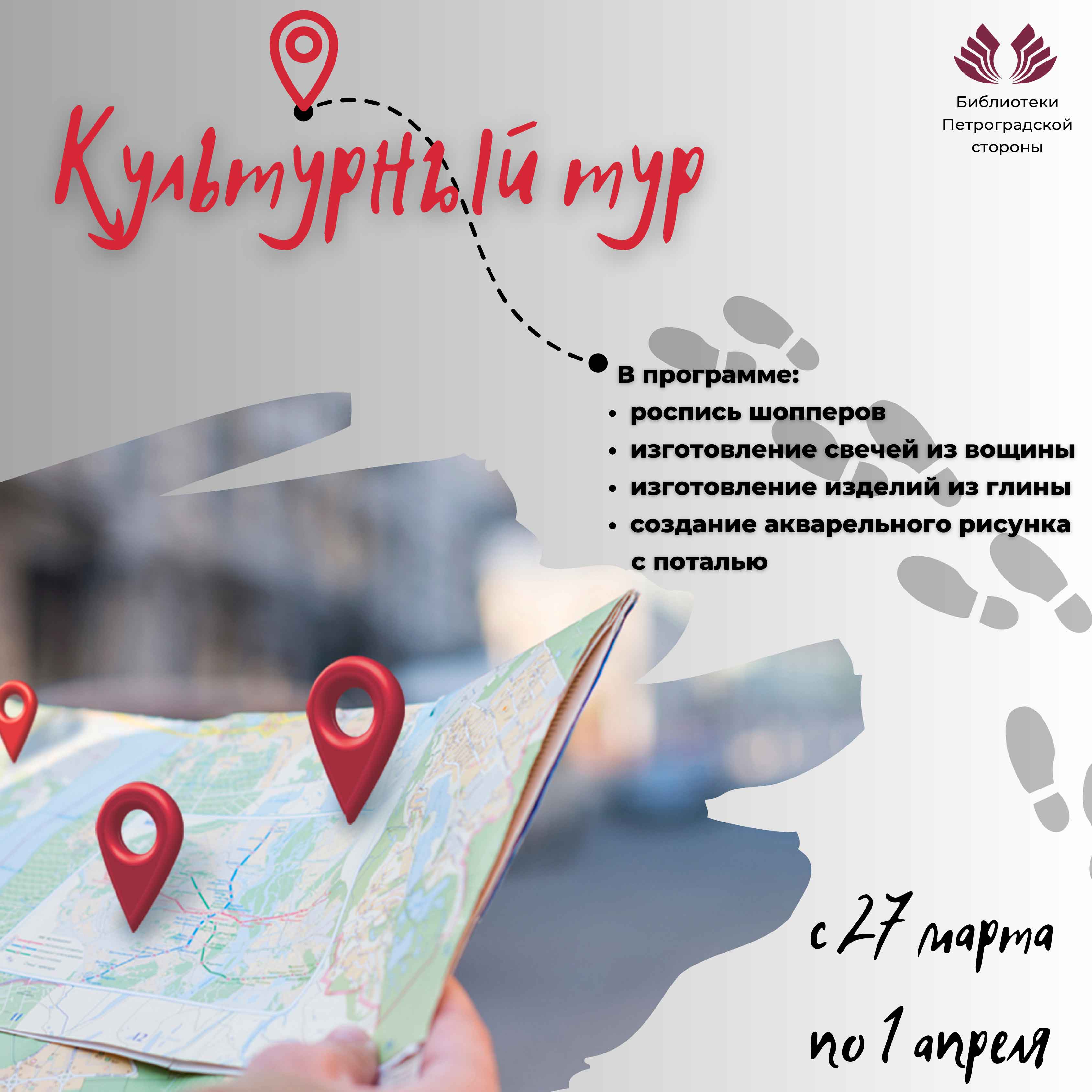 С 27 марта по 1 апреля на территории Петроградского района пройдёт Культурный тур по Библиотекам Петроградской стороны.