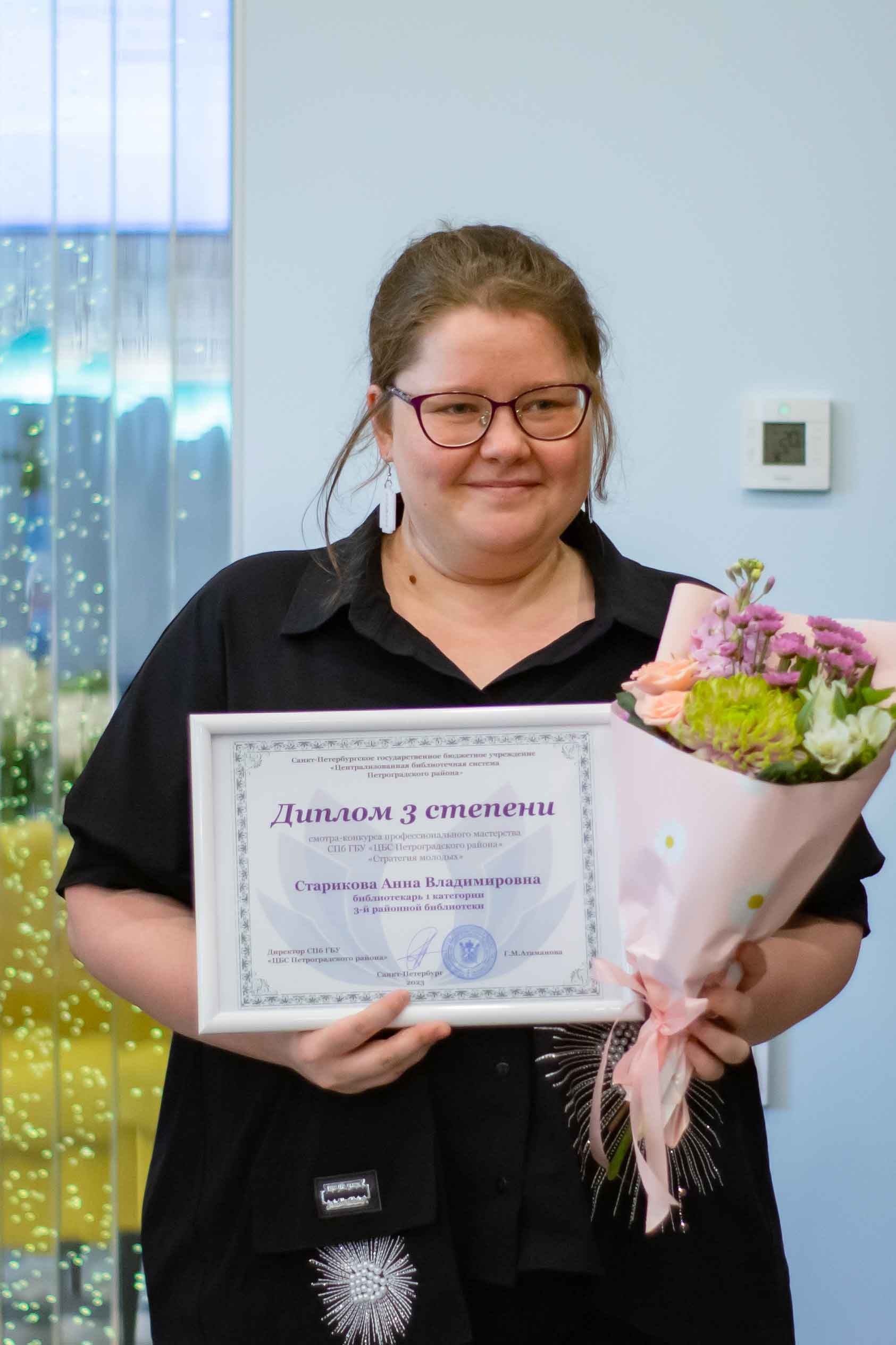 И по традиции каждый год в эти дни мы встречаемся в тесном дружеском кругу, чтобы наградить победителей и призеров двух традиционных для Библиотек Петроградской стороны конкурсов. Ежегодный районный профессиональный конкурс «Лучший библиотекарь года» в 2023 году был посвящен достижениям молодых специалистов «Стратегия молодых». Целью этого конкурса является развитие творческой активности молодых библиотекарей до 35 лет, поддержка и поощрение талантливых и инициативных специалистов, выявление и внедрение новаторских идей в целях успешного развития библиотек.
