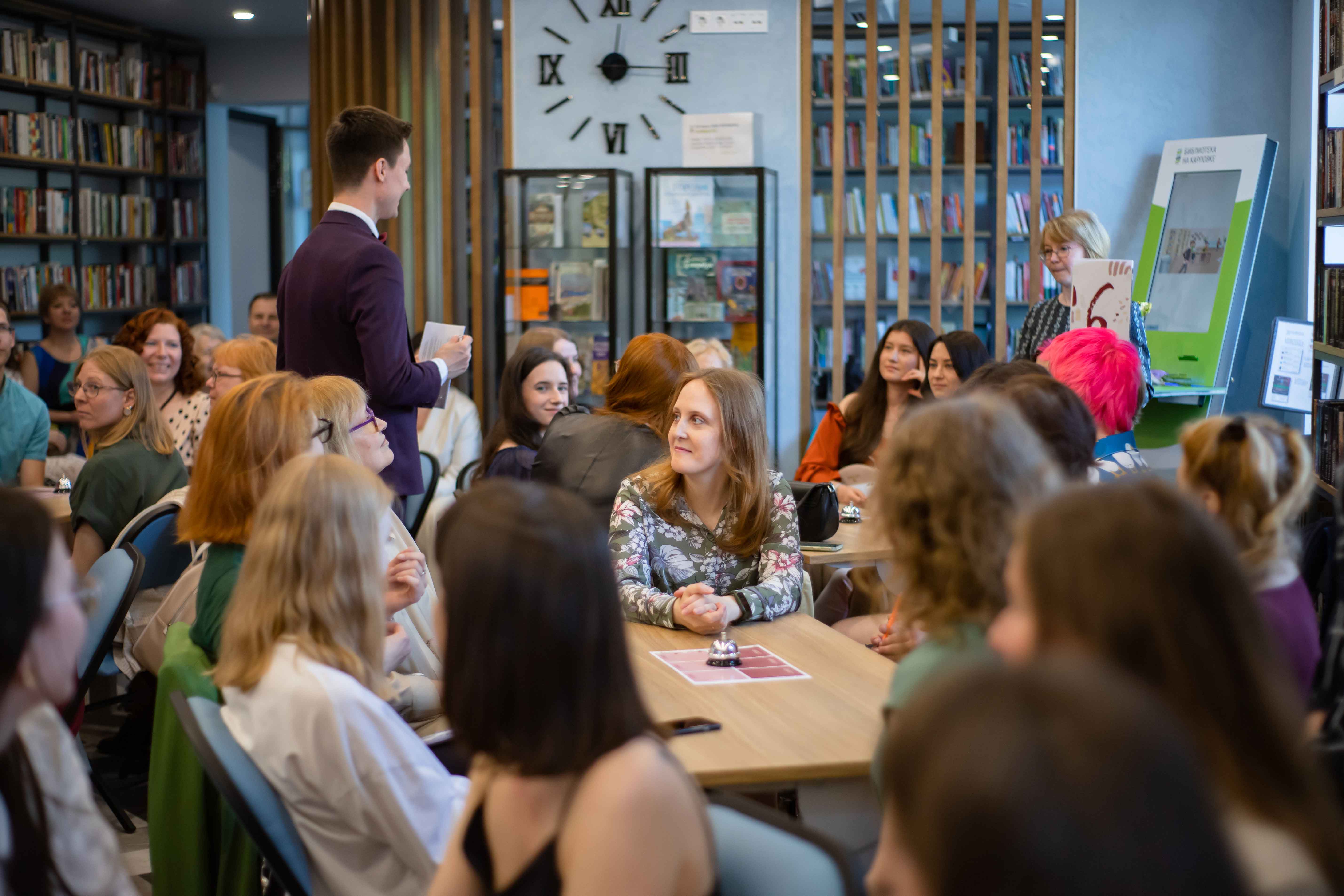 Хорошо, когда в свою работу можно не только привнести новаторские идеи и инновационные формы, но и следовать хорошим, добрым традициям. Одной из таких традиций является неклассическое празднование Общероссийского дня библиотек. Поэтому для всех участников праздничной программы провели настоящую «Битву профессионалов»! «Битва профессионалов» - это краеведческая игра с традиционными и, конечно же, новаторскими заданиями, которые посвящены профессиональной деятельности, истории и достопримечательностям города. Участники, разделившись на 6 команд, состязались в 6 раундах совершенно разных форматов: от интеллектуальных вопросов до подвижных игр. Например, в раунде «Назови то, не знаю что» необходимо было узнать, какое известное высказывание, знаменитый городской объект или известный старый фильмы были зашифрованы с помощью эмодзи. Также участники Битвы состязалась в литературном крокодиле, разгадывали шифры от нейросети и многое другое.