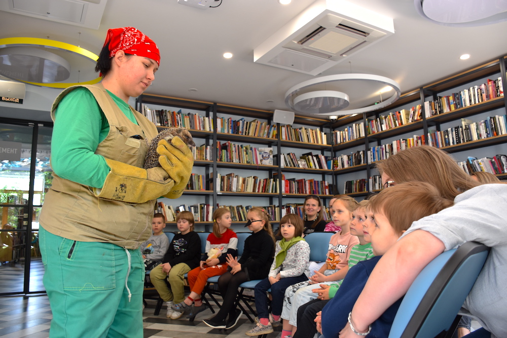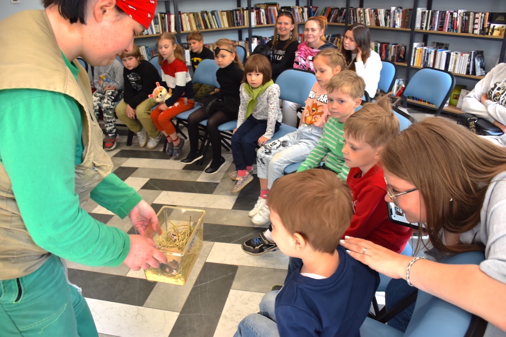 Юные читатели рассмотрели любящую вегетарианскую пищу саранчу, полюбовались на сверчков и познакомились с неясытью Василием. Узнали, что неясытей можно увидеть в городских парках в сумерках, когда они выходят на охоту.