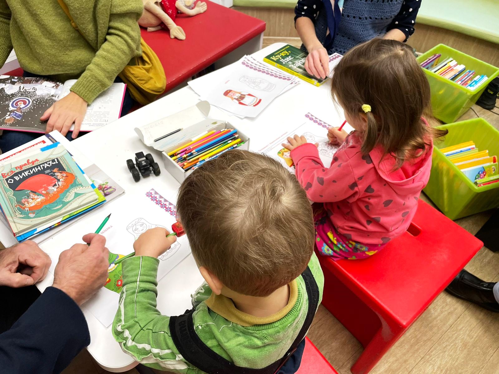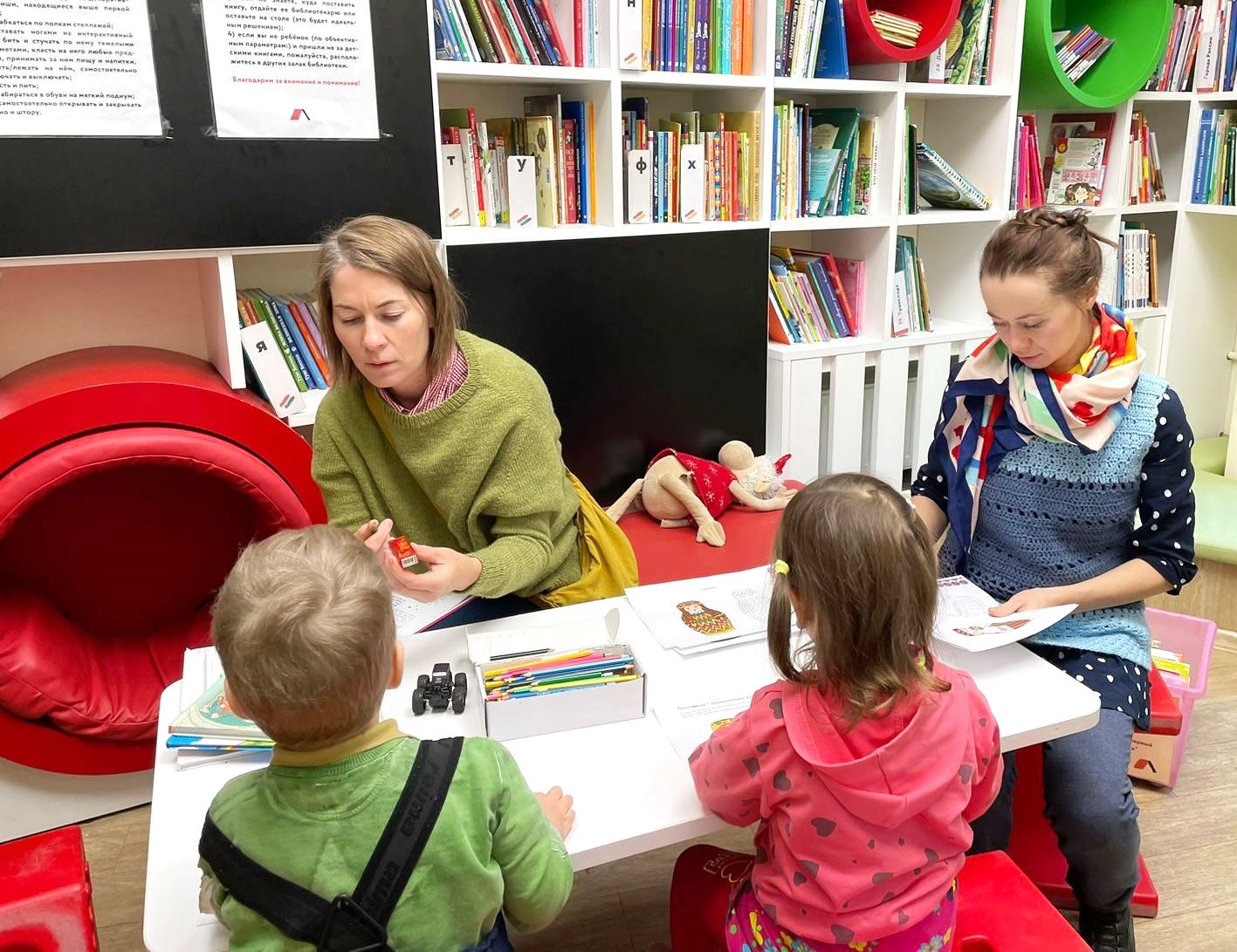 5 ноября в библиотеке им. В.И. Ленина (ул. Воскова, д. 2), одновременно с Этнографическим диктантом-2022, состоялось камерное интерактивное занятие для самых маленьких, посвященное Дню народного единства.