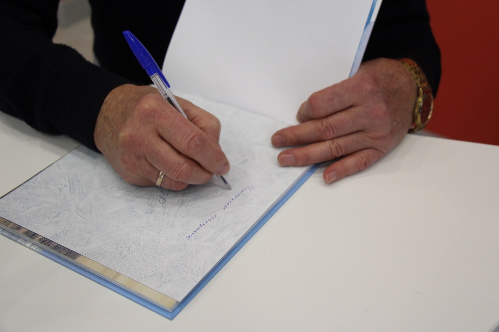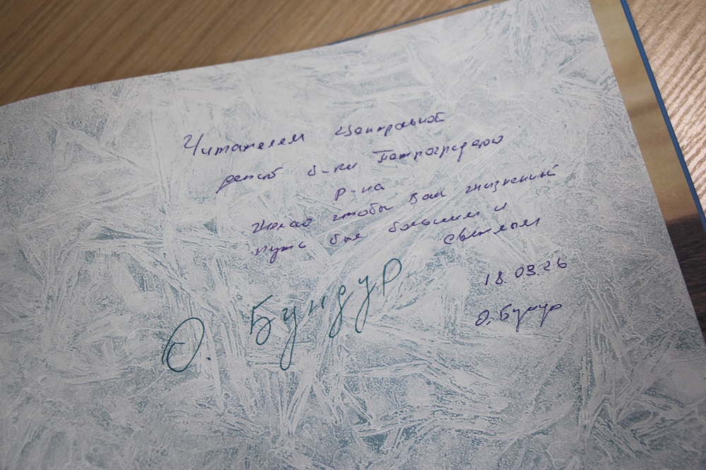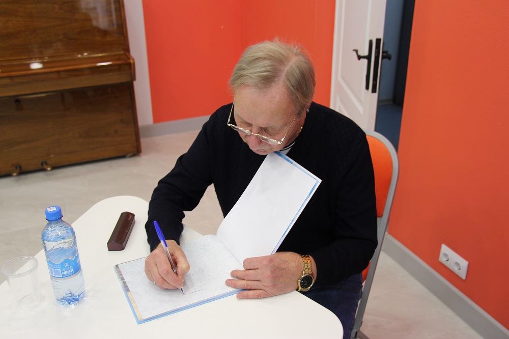 На память о встрече Олег Семенович оставил автограф в одной из своих книг, находящихся в фонде библиотеки.