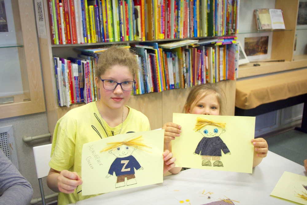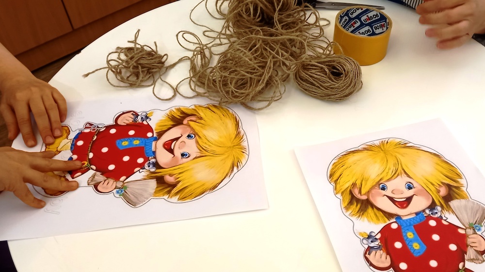 Детское занятие «Домовёнок Кузя, или Кто в доме хозяин» по мотивам книги Т. И. Александровой прошло и в Троицкой библиотеке (Троицкая пл., д.1). Можно было сделать аппликацию собственного домовенка с настоящими соломенными волосами.
