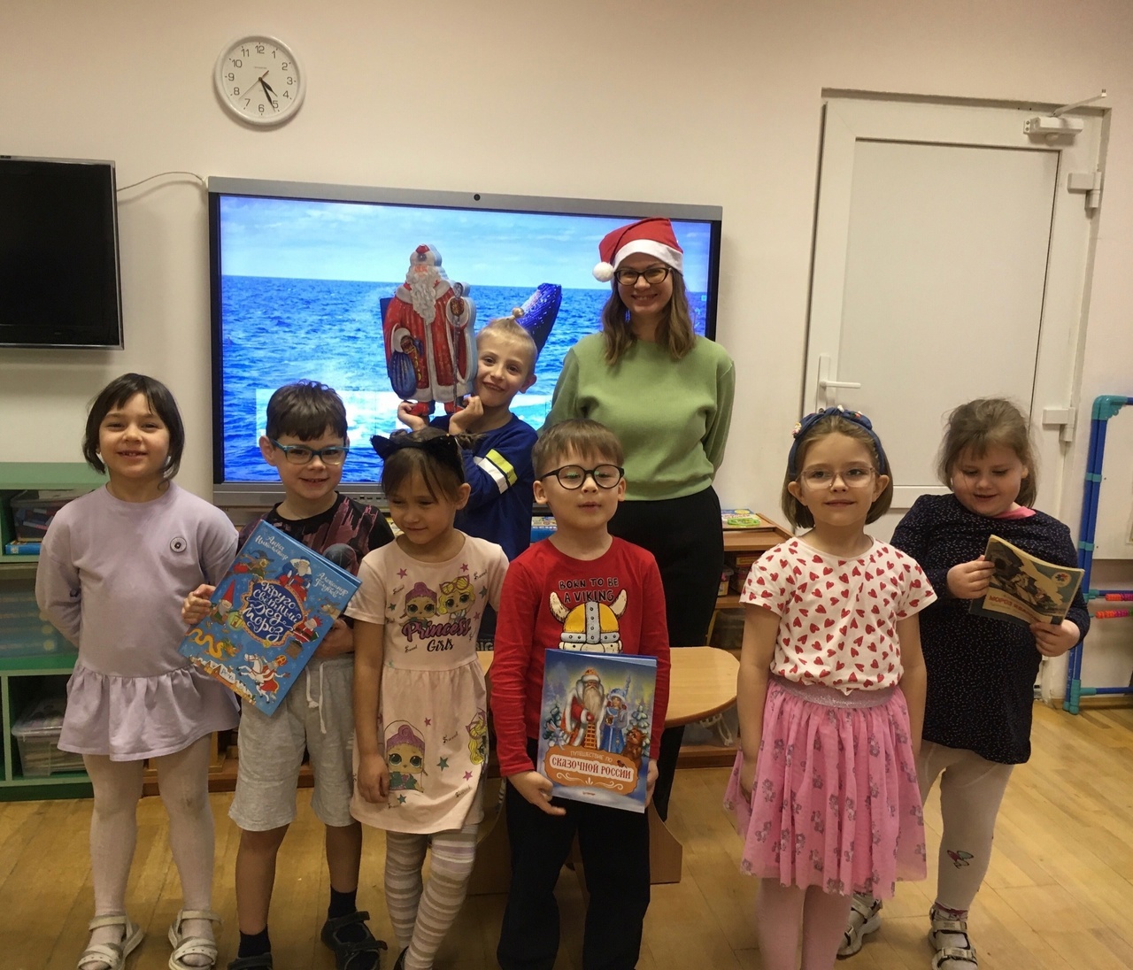 Современные дети часто путают Санта-Клауса, Деда Мороза, а иногда принимают за них гномов в красных шапочках. Разобраться в этом помогут книги! Листая книгу Анны Никольской «Кругосветный Дед Мороз», ребята внимательно рассмотрели, как выглядят главные зимние волшебники разных стран – Санта-Клаус, Йолупукки, Корбобо, Папа Ноэль, и их помощники – Бык Зимы у якутского Чысхаана, олени у итальянского Баббо Натале, Снеговик Дасти, Снежная Королева, Принц, Принцесса, Ведьма и мыши у шведского Юльтомтену, олени Санта-Клауса и жена Мэри Крисмас британского Батюшки Рождества.