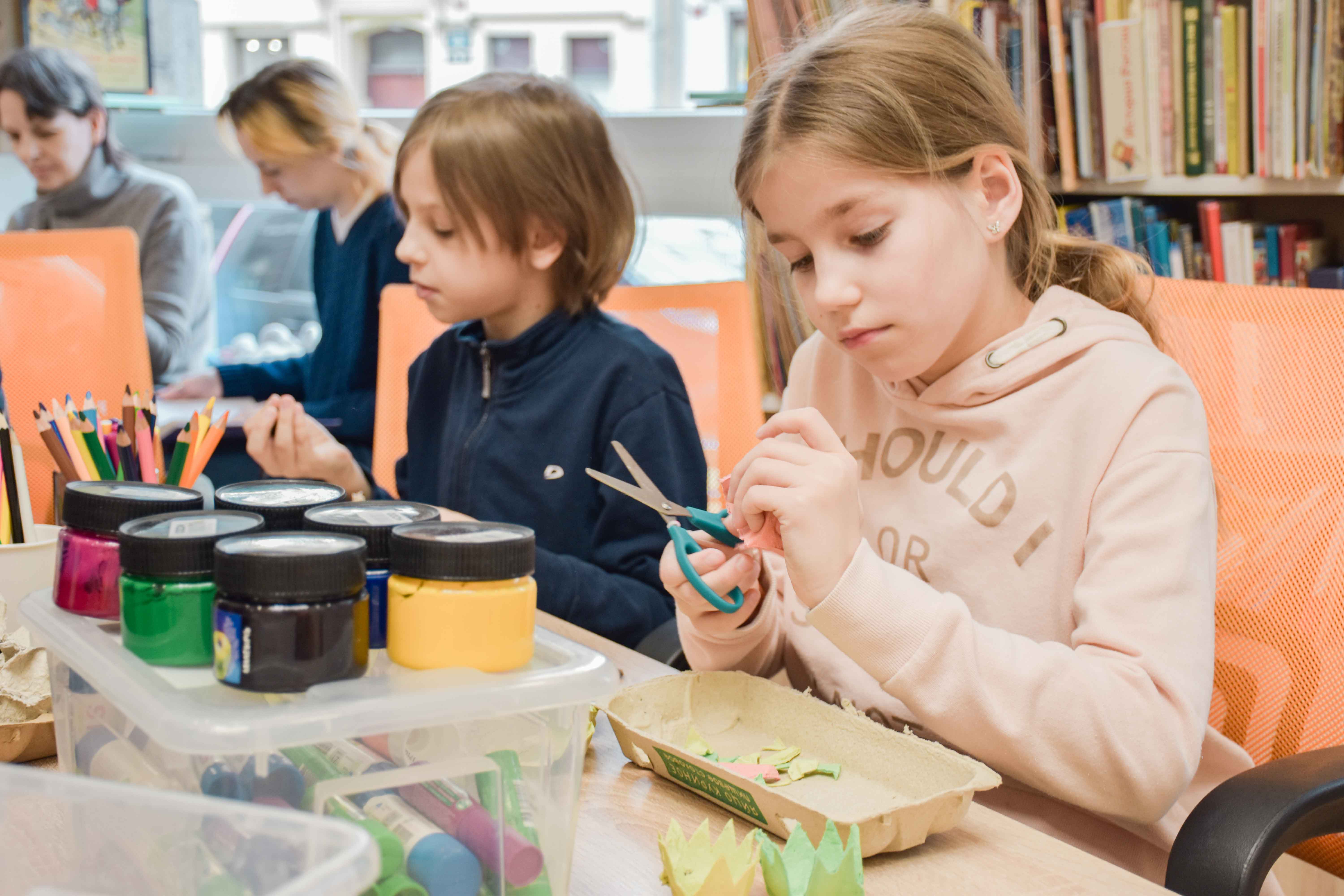 Пока родители вдохновлялись земледелием в городских условиях, экологический клуб Университета ИТМО «ITMO.GREEN» вместе с детьми дарили старым яичным лоткам вторую жизнь. Юные экогерои и фантазёры мастерили из них гирлянды, карнавальные маски, букеты цветов и многое-многое другое.