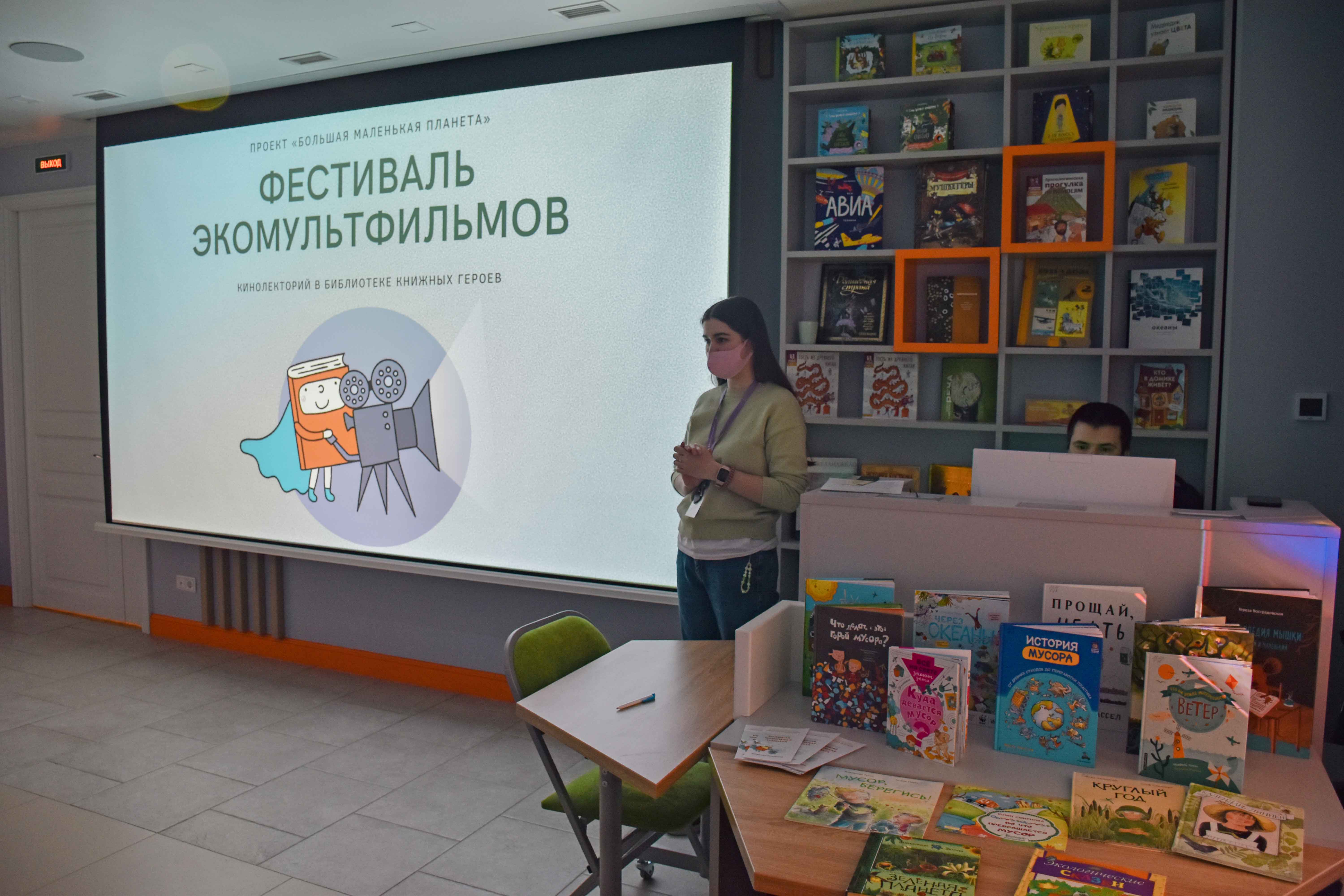 20 января в Библиотеке книжных героев в рамках проектов "Большая маленькая планета", «Герой в эфире» и "Книжные мультфильмы" прошел детский кинолекторий «Фестиваль экомультфильмов». На фестиваль пришли родители с детьми, которые неравнодушны к состоянию нашей планеты. Каждому участнику был выдан билет-закладка с советами для настоящего экогероя. Отрывки из детских мультфильмов в интересной и познавательной форме рассказали о том, что значит жить на Земле и как помогать ей стать чище, что конкретно может сделать каждый житель планеты. На встрече у каждого ребенка была возможность поделиться эмоциями о просмотренном, рассказать, что для него было нового и какие экологичные привычки будет стараться прививать в ближайшем будущем.