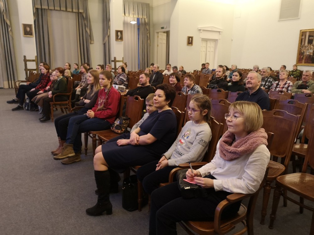 27 февраля мы были на творческой встрече с биологом Павлом Глазковым в Русском Географическом обществе. Он показал свои репортажи: "Ворон", "Гнезда кабанов", "Чернети у Петропавловской крепости", "Белая кряква Гатчинского парка", "Ледяные блюдца на Ладоге".