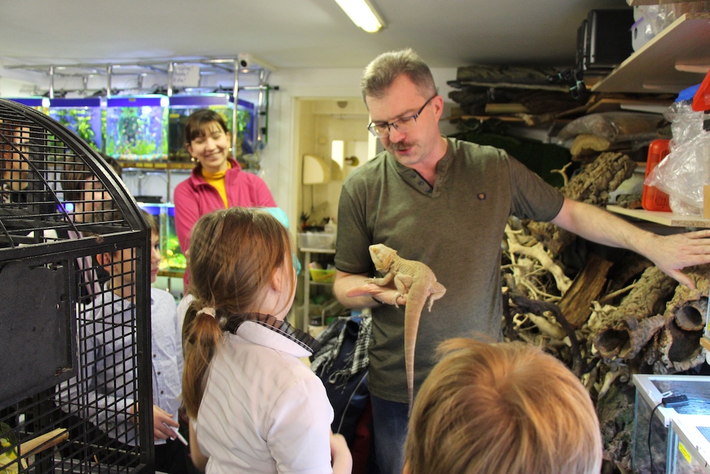 25 февраля прошла экскурсия в чудо-зоо-магазине ЗАВР. Директор магазина показал нам змей, хамелеонов и других завров. Такого умного, харизматичного, веселого и доброго экскурсовода по миру дикой природы еще надо поискать! Мы прослушали лекцию по морфологии животных – на примере живых зверей научились определять по зубам, когтям, окрасу и форме головы место обитания и способ питания животного.