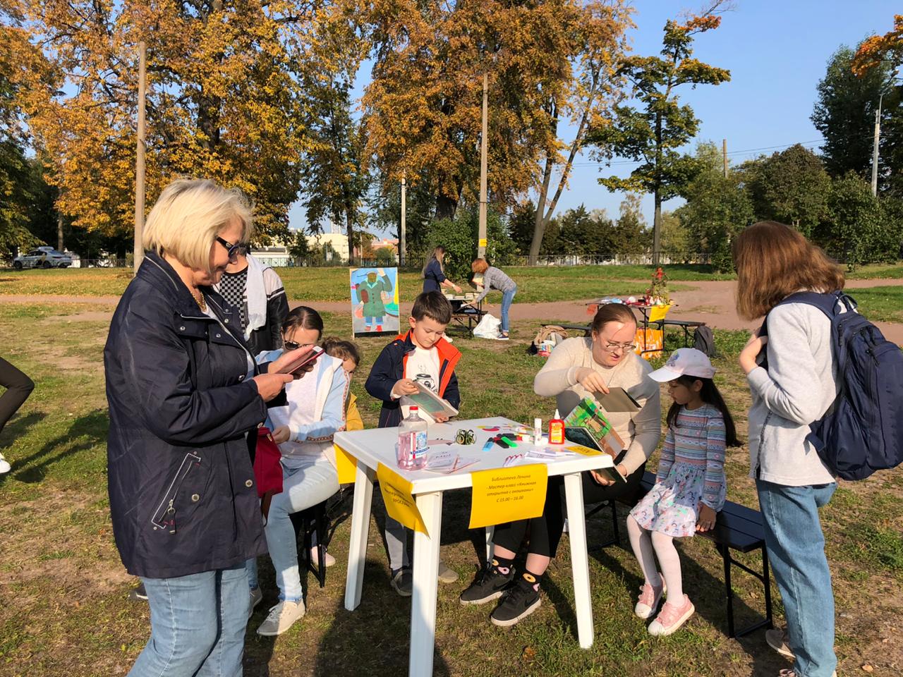 Пока со сцены звучали выступления творческих коллективов, дети, взрослые и молодежь знакомились с программой участников фестиваля. Успехом пользовались библиотеки Петроградской стороны. Библиотека имени В.И. Ленина проводила мастер-класс «Книжная открытка с окошками». Всей семьёй можно было полистать книгу К. Гарош «Прогулки по саду», выяснить, как она устроена и сделать собственную открытку, в которой открывается множество удивительных окошек.
