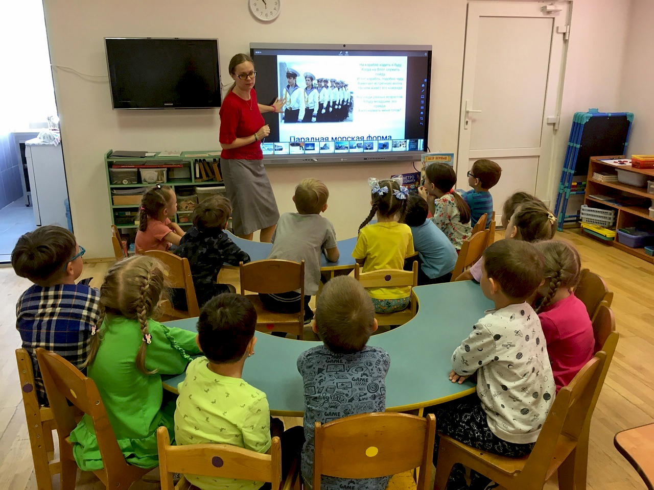 28 июля сотрудник Юношеской библиотеки имени А. П. Гайдара пришла к воспитанникам детского сада № 70 (ул. Грота, д. 2). Библиограф Светлана Нестерова рассказывала ребятам об истории создания русского флота.