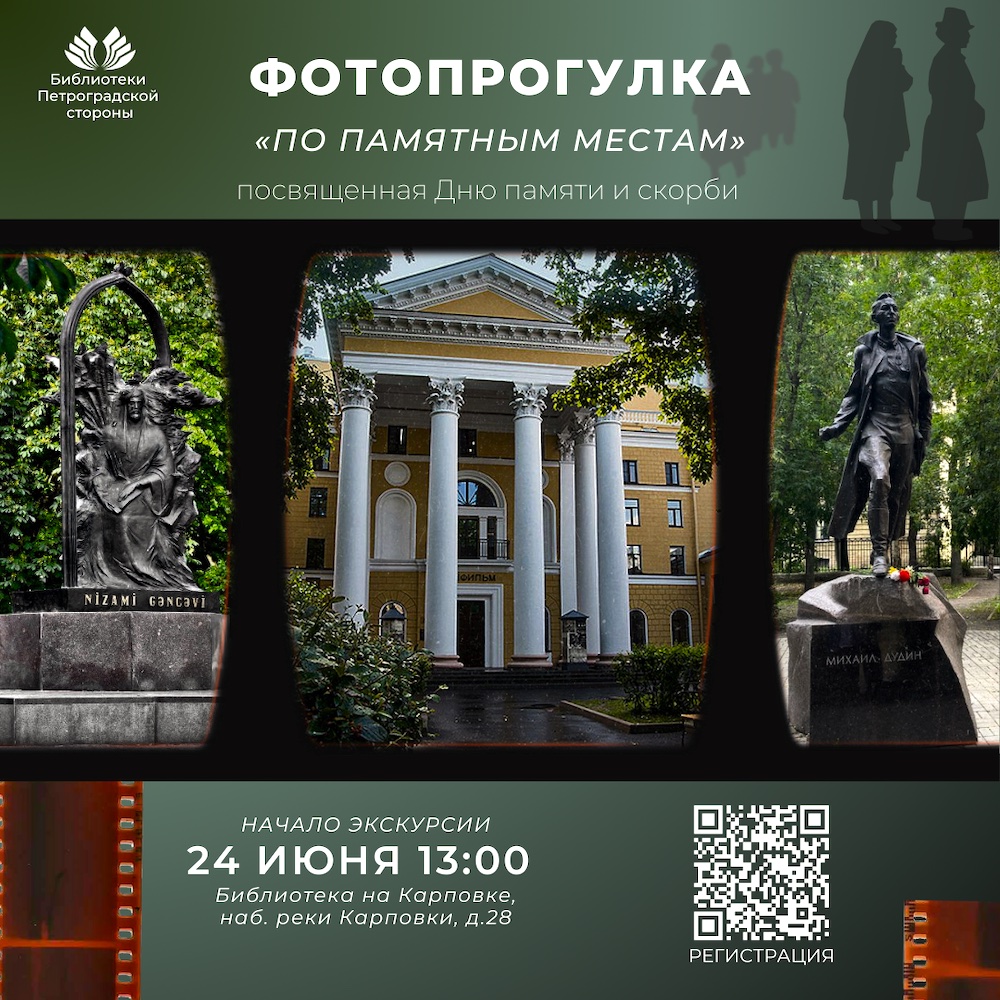 Экскурсия запланирована на 24 июня в 13:00, и будет начинаться от Библиотеки на Карповке (наб.реки Карповки, д.28). На фотопрогулке участники посетят 10 значимых мест района, в том числе сквер Низами, узнают историю блокадной булочной, увидят памятник Михаилу Дудину.