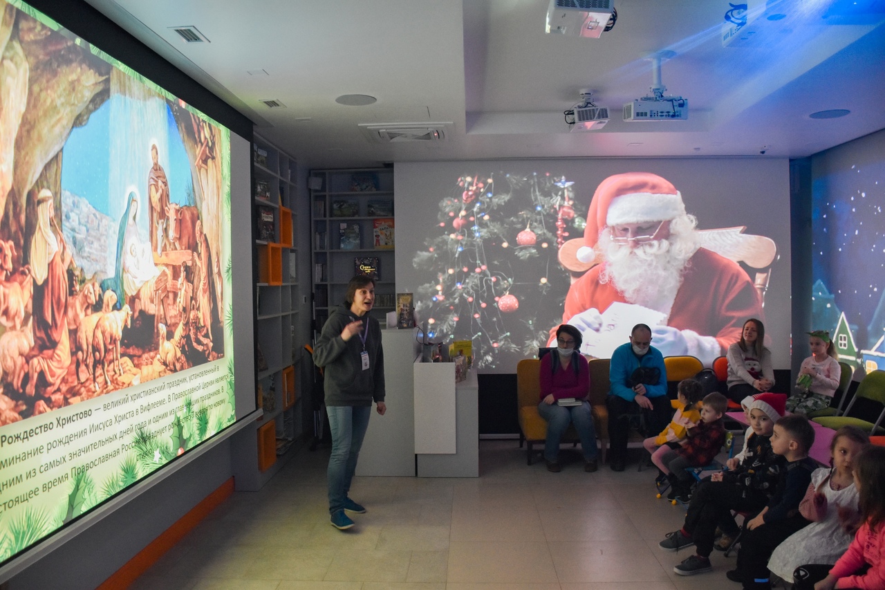Ребят школьного возраста удивило и увлекло интерактивное занятие по книге "Новый год шагает по планете" Ольги Узоровой и Елены Нефедовой. Интересно было познакомиться с родственниками Деда Мороза из разных стран, узнать, какие подарки получают дети в новогоднюю ночь по всему миру, и как выглядят иностранные праздничные столы. А в завершении детей ждал творческий мастер-класс по созданию открытки.