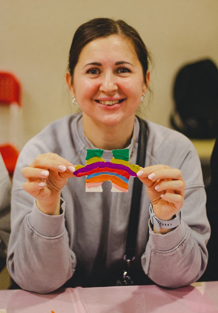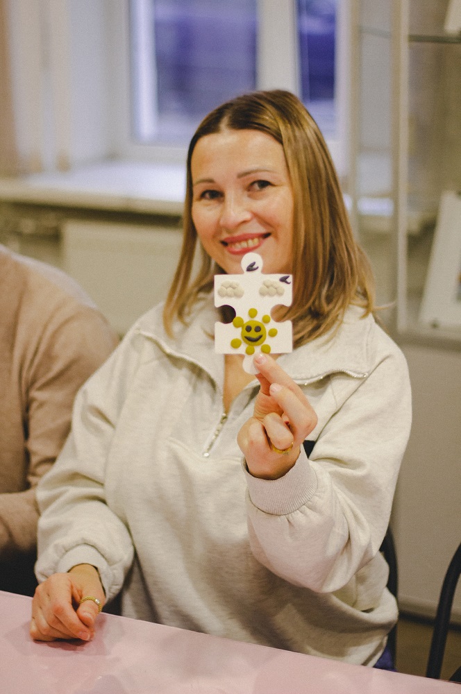 Вначале все разогрелись в игре «Крокодил», которая получилась весёлой и порой довольно необычной! Затем каждый создал свой уникальный кусочек пазла, передав настроение через цвет и форму. Кульминацией стало объединение всех деталей в одно большое панно, символизирующее богатство разных эмоций и моментов.