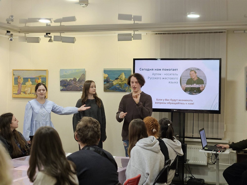 Организовали и провели мастер-класс студентки третьего курса филологического факультета РГПУ им. А.И. Герцена — София Петрова и Дарья Шабалина. Особенно благодарим волонтера-носителя русского жестового языка Артема Самсонова, который сделал мероприятие доступным для всех участников.