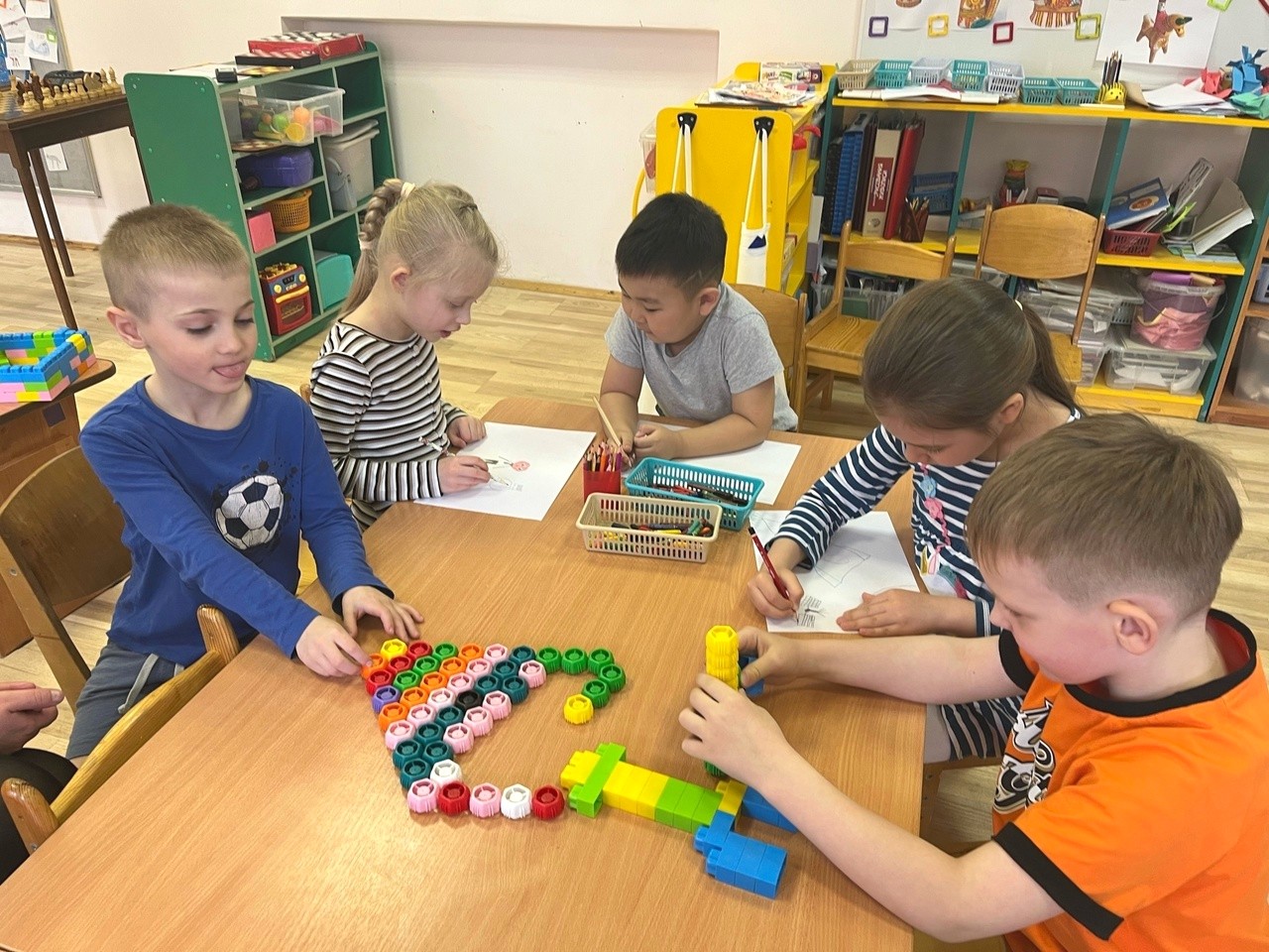 Покорение космоса — процесс непрерывный. Мало подняться к звёздам, важно научиться жить и работать в условиях, предлагаемых межзвездным пространством. Дети узнали имена выдающихся космонавтов. 16 января 1969 года Евгений Васильевич Хрунов первым в истории вместе с товарищами провёл стыковку двух кораблей и перешёл с одного на другой. Советское телевидение вело прямую трансляцию перехода Хрунова и Елисеева в открытом космосе. А Валерий Владимирович Поляков совершил самый длительный в истории космический полёт. 8 января 1994 года он прибыл на станцию «Мир» и пробыл там 437 суток, 17 часов и 58 минут. Сергей Викторович Залётин возглавлял тот самый экипаж, который последним посетил орбитальную станцию «Мир». В конце занятия дети увлеченно создавали ракеты и стыковочные модули с помощью конструктора.