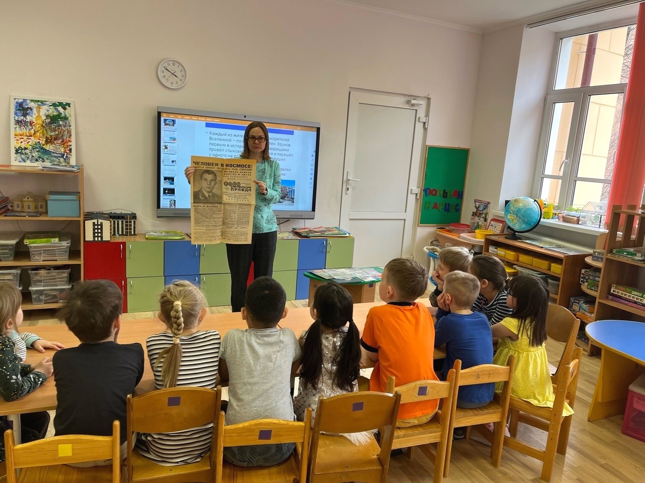 Ребята смогли увидеть коллекцию открыток «Впервые в мире» и «Лётчики-космонавты СССР», подлинную газету от 13 апреля 1961 года, напечатанную на следующий день после полета Юрия Гагарина в космос.