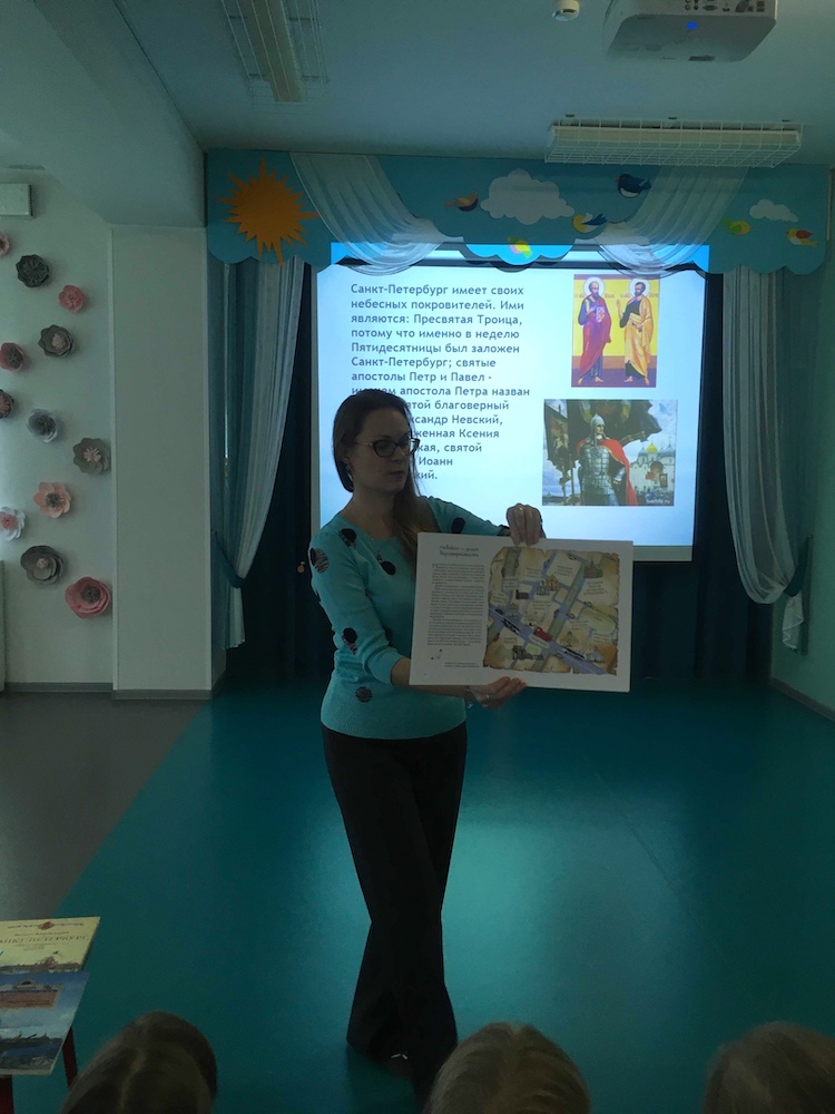 Ребята узнали и о небесных покровителях Санкт-Петербурга, в честь которых названы улицы, площади, соборы. Вспомнили и о домике Петра Первого — первой жилой постройке в городе и единственном сооружении того времени, сохранившемся до наших дней. Узнали об официальных символах Санкт-Петербурга: гимне, флаге и гербе, о первом в России музее — Кунскамере, Ботаническом саде и главной площади города — Дворцовой. Мероприятие позволило дошколятам окунуться в историю создания города, вспомнить главные достопримечательности и полюбоваться непередаваемой красотой Санкт-Петербурга.