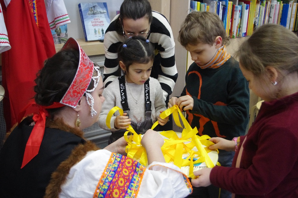 22 февраля в 3-й районной библиотеке (Троицкая пл., д. 1) состоялась интерактивная программа «Сударыня Масленица». В этот день юные читатели отправились в путешествие по традициям одного из самых любимых праздников на Руси – познакомились с историей Масленицы, её обычаями и, конечно, главными символами.