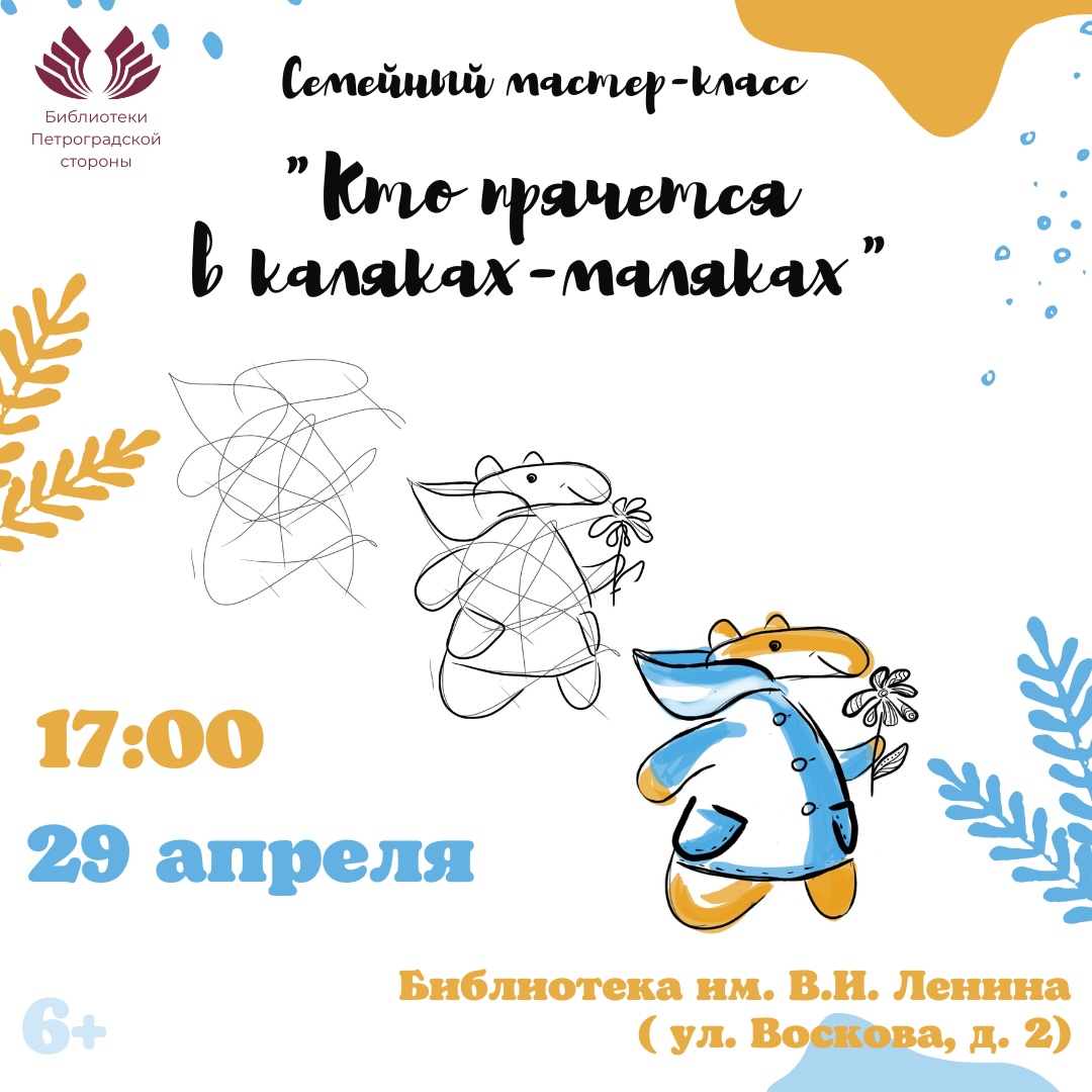 Библиотеки Петроградской стороны приглашают принять участие в необычном, увлекательном семейном мастер-классе «Кто прячется в каляках-маляках», который пройдет 29 апреля в 17:00 в библиотеке имени В. И. Ленина (ул. Воскова, д. 2). Это событие станет замечательной возможностью для детей и их родителей погрузиться в мир творчества и фантазии!