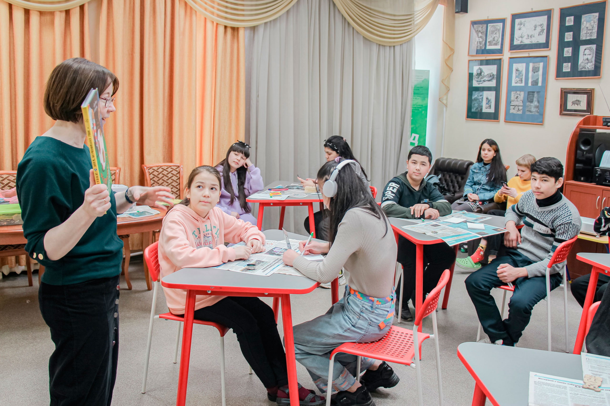 Во второй день подростки попытались сочинить собственные истории и стихи, представив себя через какой-то предмет, цвет, природную стихию, эмоцию. К слову, участники этого лагеря – дети, которые не совсем уверенно говорят по-русски. Именно такие занятия помогают им осваивать язык, формулировать свои мысли. Волонтерам лагеря «Дети Петербурга» и библиотекарям удалось создать душевную, дружескую атмосферу. Дети помогали друг другу, переводили нужные слова на русский, узбекский, таджикский. В центре внимания оказались библиотечное пианино и синтезатор – среди подростков обнаружились музыканты-импровизаторы. А ведь музыка – это тоже язык, причем универсальный.