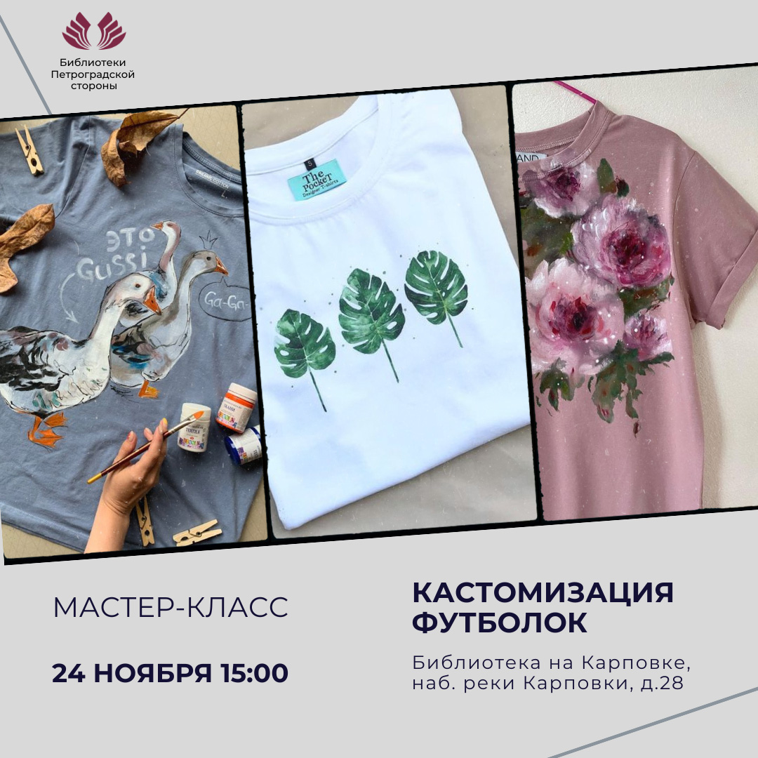 Всероссийский конкурс «Невские сезоны» совместно с Библиотеками Петроградской стороны проведет мастер-класс по росписи одежды «Кастомизация футболок».