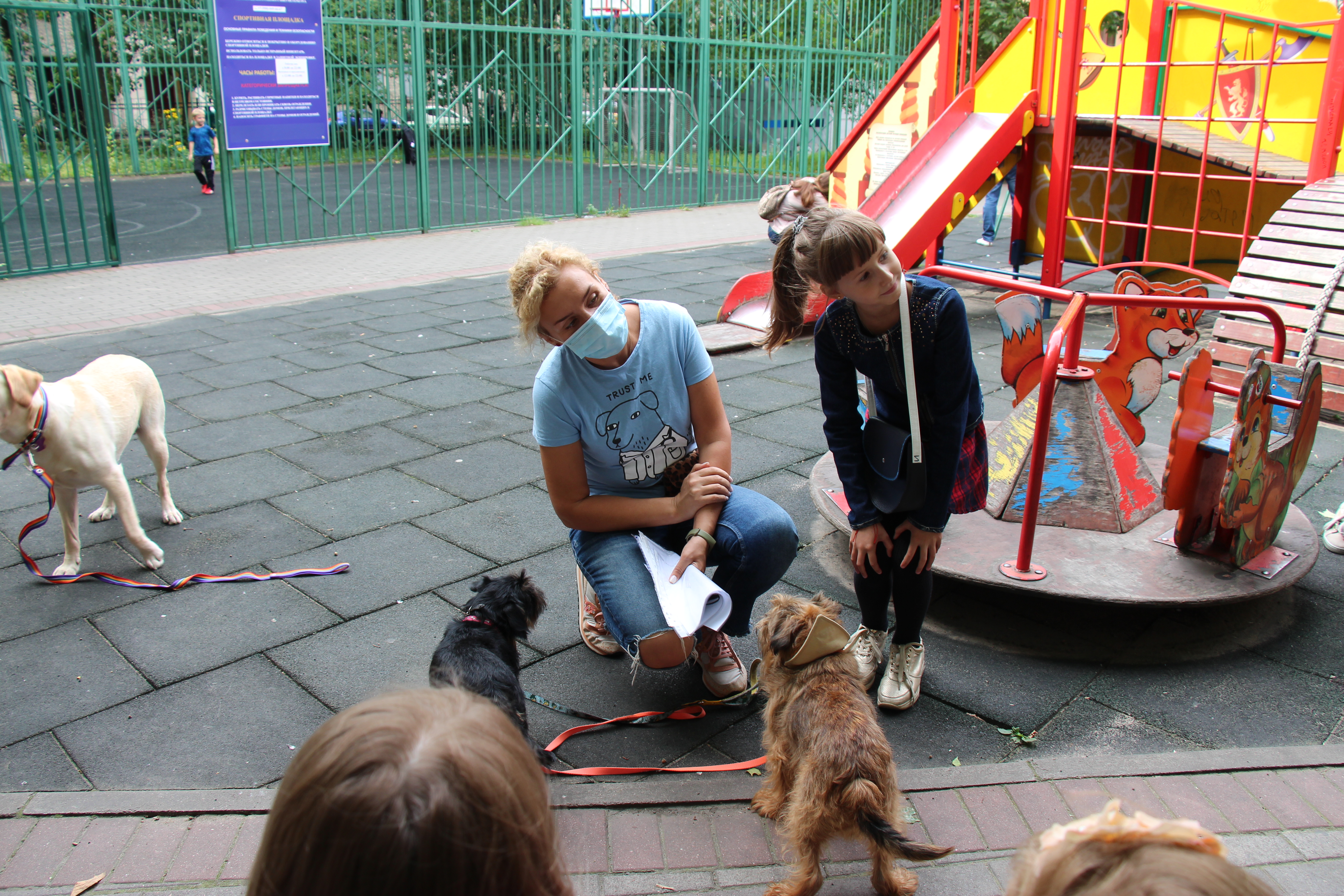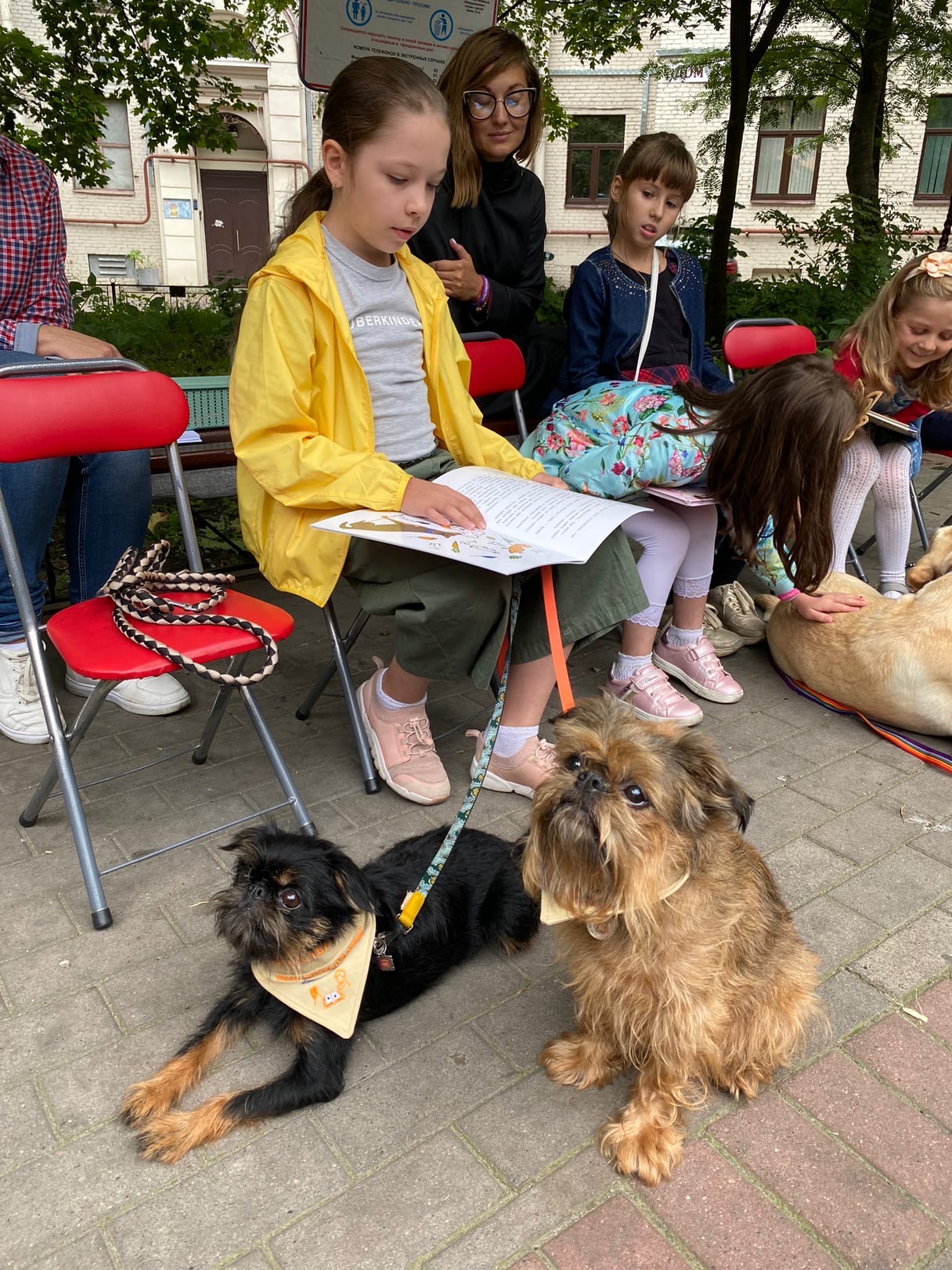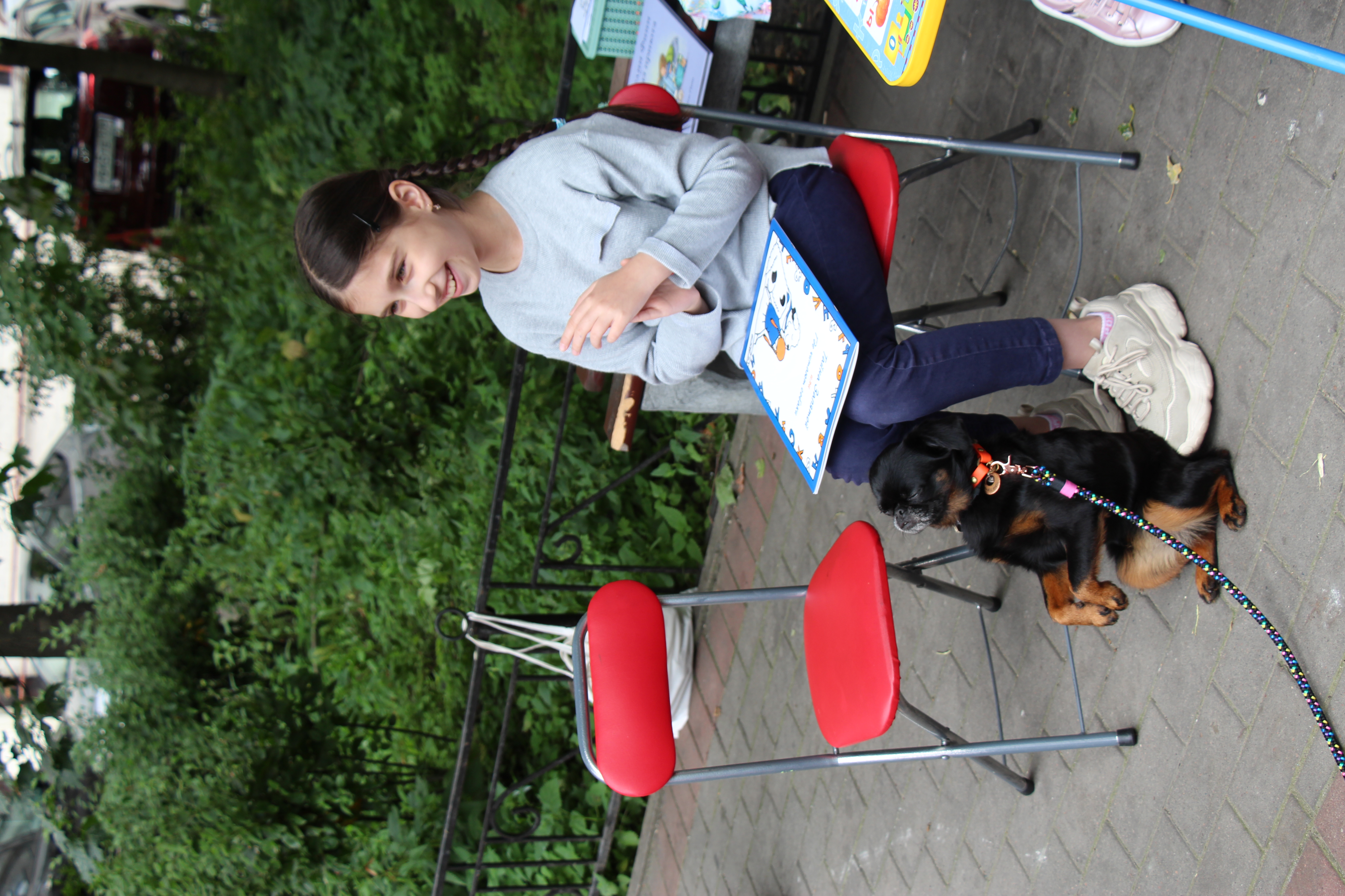 Субботний день выдался погожим, чему были очень рады все участники BookDog Пикника: и книжные эксперты Центральной районной детской библиотеки, и маленькие читатели с родителями, и пять собак-терапевтов со своими хозяйками. Все собрались во дворике Большого проспекта, 73 Петроградской стороны, чтобы почитать книги вместе с хвостатыми друзьями.