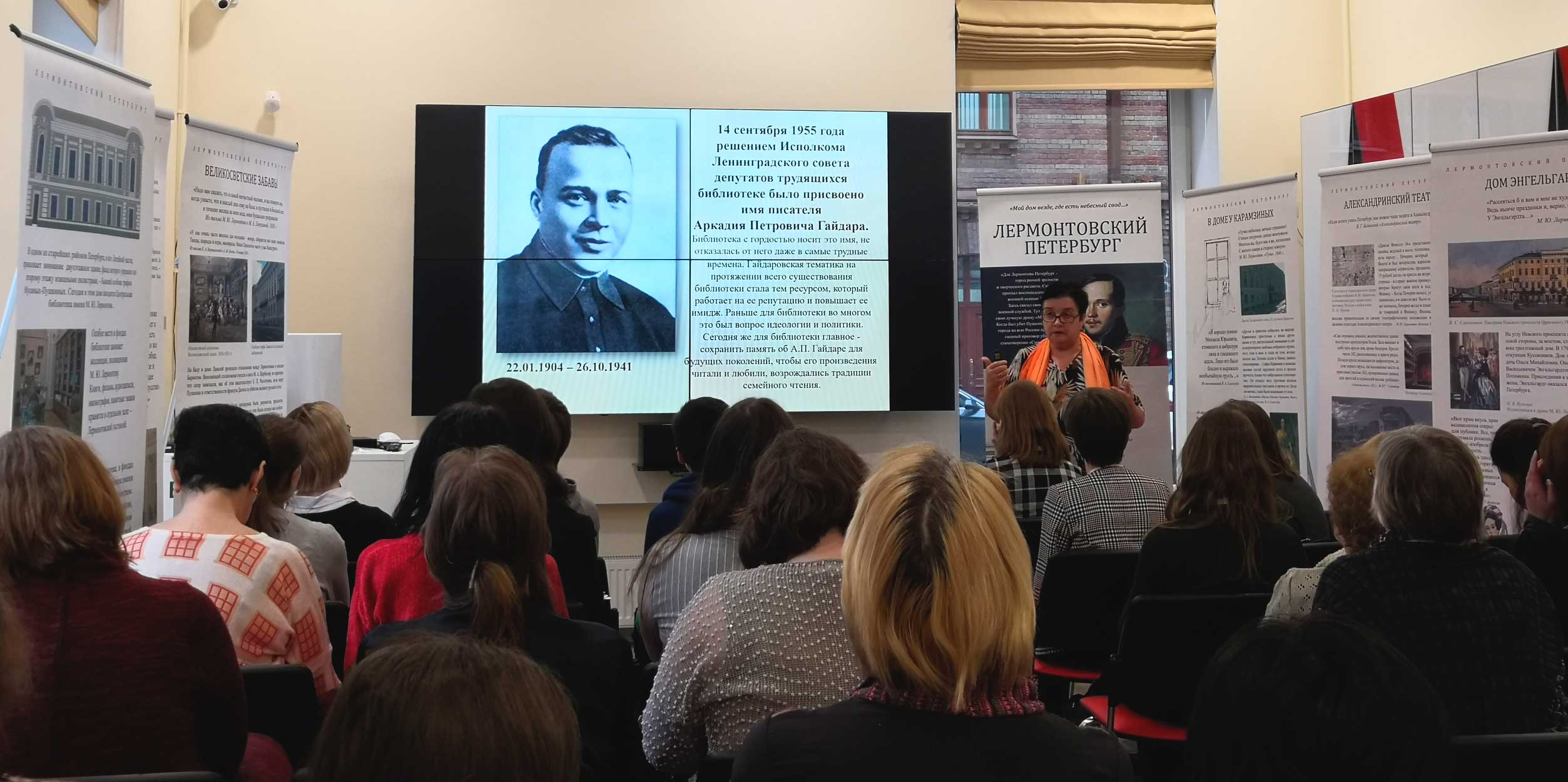 Людмила Артуровна Кашпур, заведующая Юношеской библиотекой им. А.П. Гайдара, познакомила слушателей с богатой историей одной из старейших библиотек Петроградской стороны и рассказала о работе с коллекциями «Гайдарика» и «Книги блокадного города».