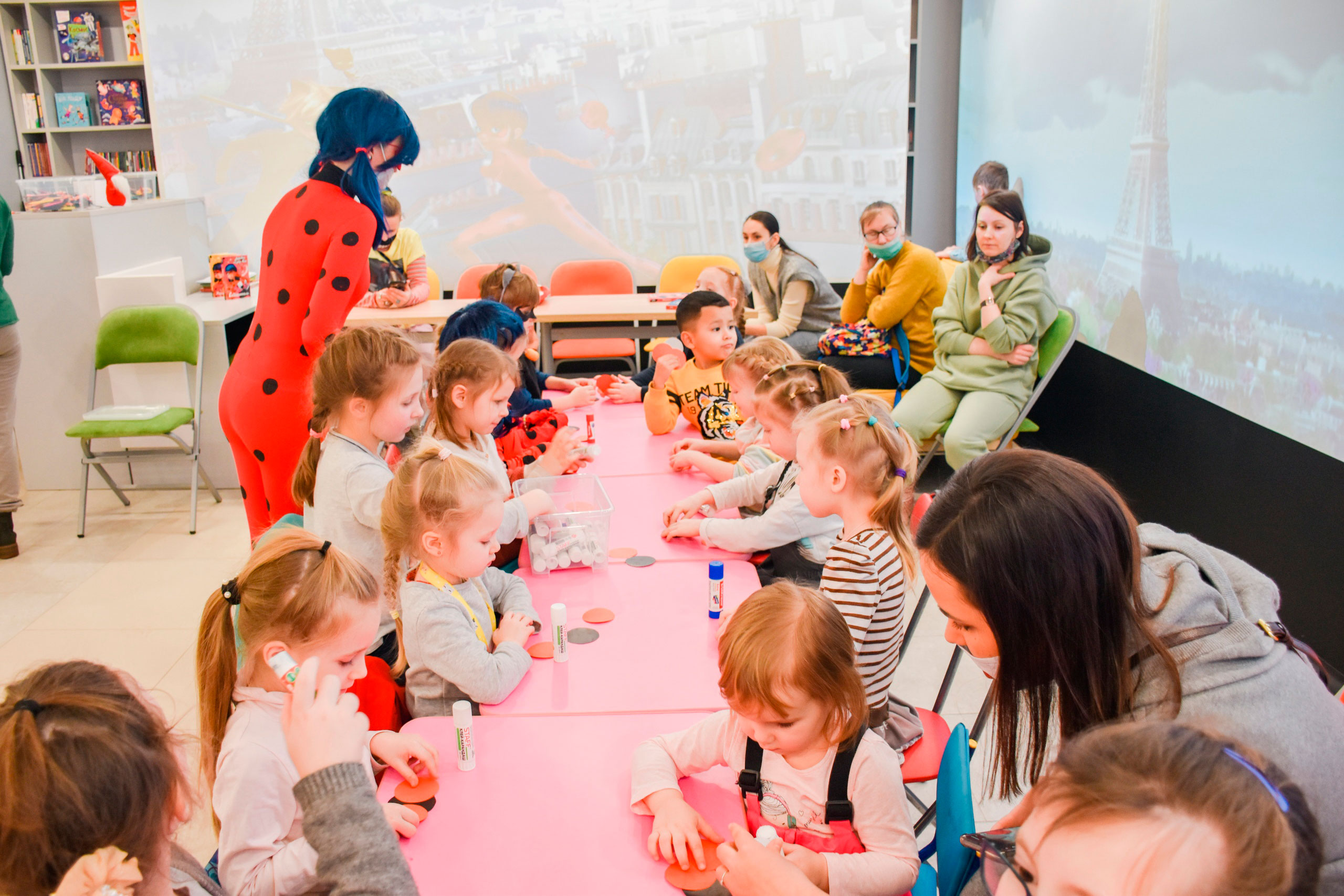 В гости к ребятам пришла Леди Баг - героиня мультсериала про двух парижских подростков, которые превращаются в супергероев Леди Баг и Супер-Кота, чтобы защищать город от злодеев. Участники мероприятия оказались настоящими знатоками этой истории. Они прекрасно выполнили задания, связанные с сюжетом мультфильма, нашли ответы на логические загадки и даже перевоплотились в разных персонажей.