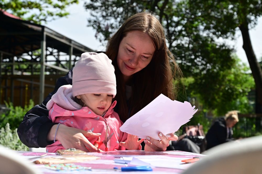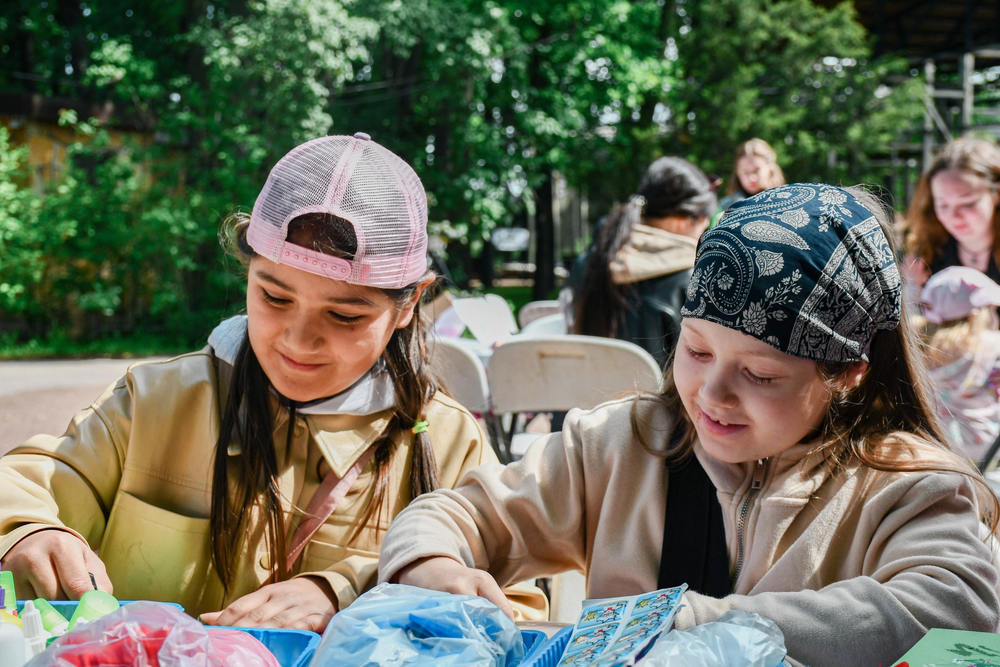 Уютный шатёр среди зелени сразу стал центром притяжения для детей и взрослых. Маленькие посетители с увлечением мастерили закладки-оригами, создавали маски животных, делали объёмные аппликации в цветах российского триколора и даже осваивали искусство морских узлов. Эти занятия не только развивали воображение и мелкую моторику, но и знакомили ребят с культурным наследием и природным миром.