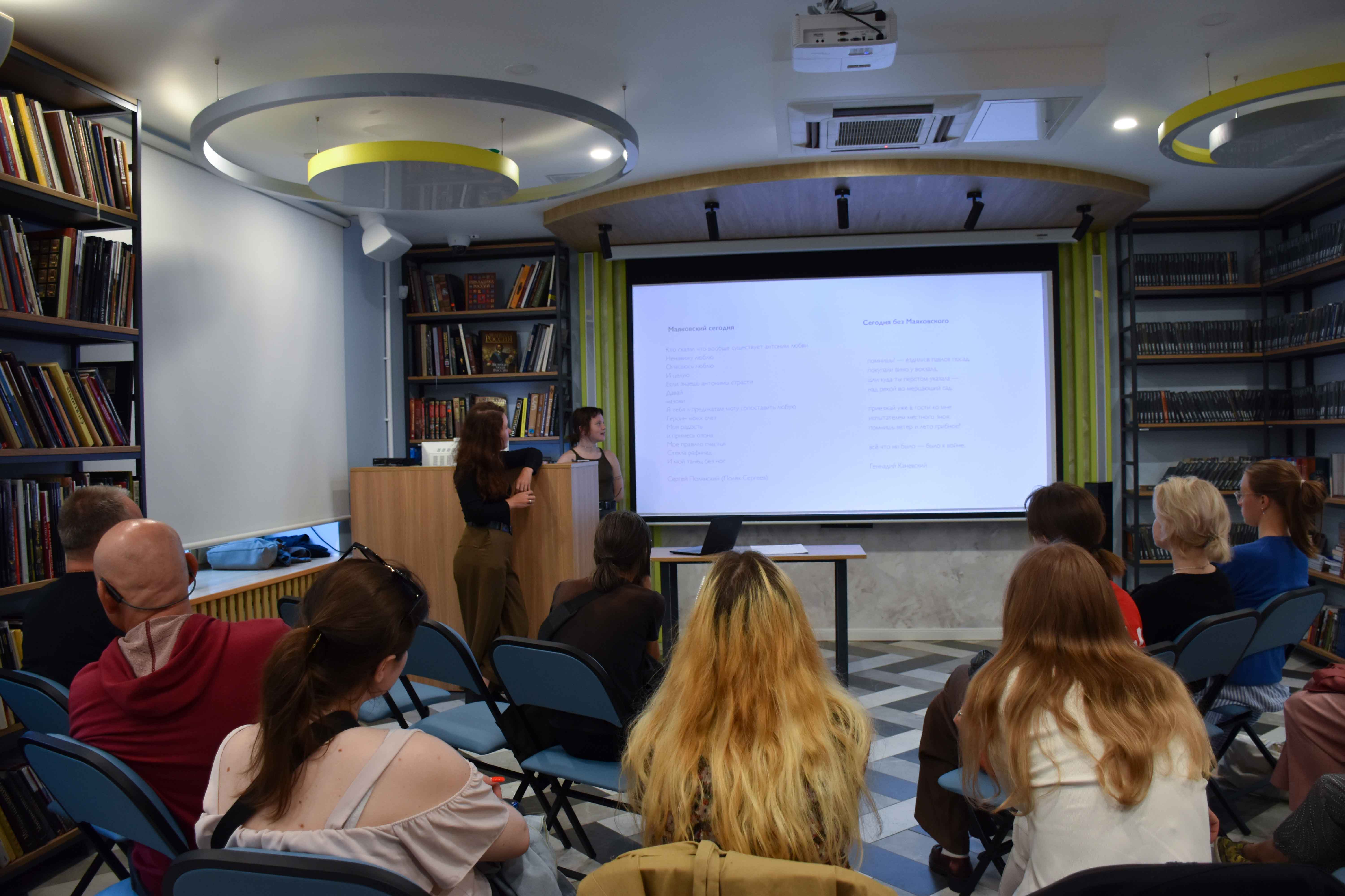 Итогом творческих Дней Маяковского стала лекция от создательниц литературной газеты «Вспышка»: Настя Кирьянова и Аня Захарова рассказали слушателям о поэзии Владимира Маяковского, а также вместе со слушателями поразмышляли на тему восприятия поэзии.